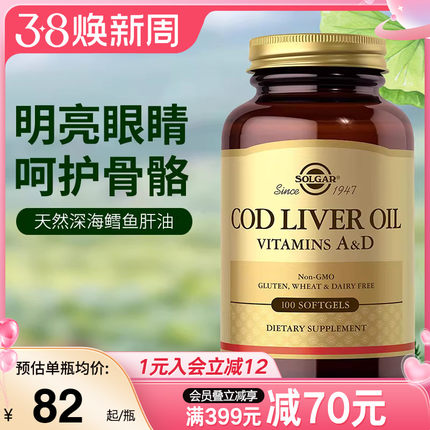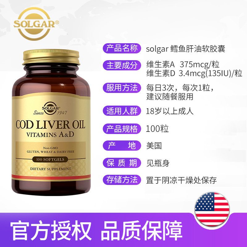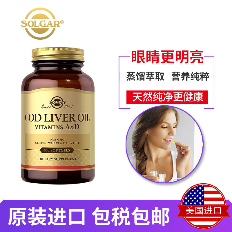 solgar美国进口鳕鱼肝油dha深海鱼油软胶囊维生素AD明目强健骨骼