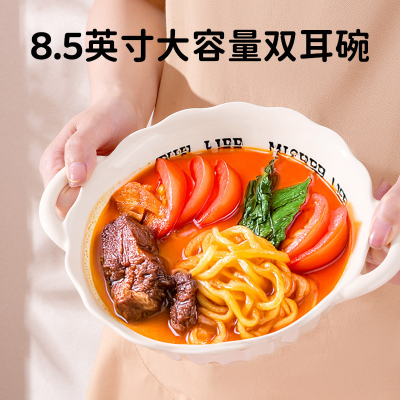 迪士尼陶瓷餐具双耳酸菜鱼大汤盆螺丝粉面碗带手柄花边烤碗装水果