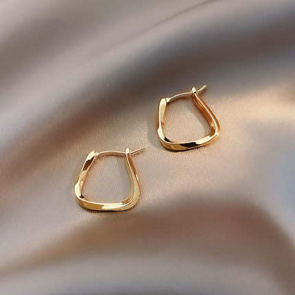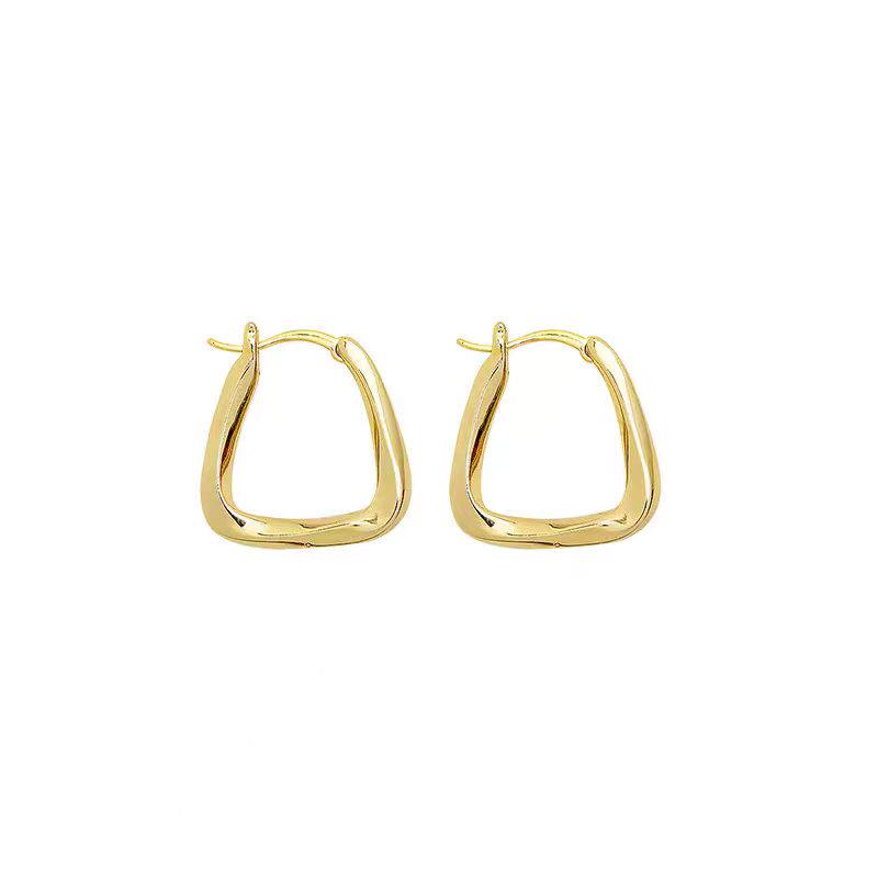奥特莱斯 撤柜清仓捡漏18K金方形素圈耳环耳扣耳饰镀金女耳圈配饰