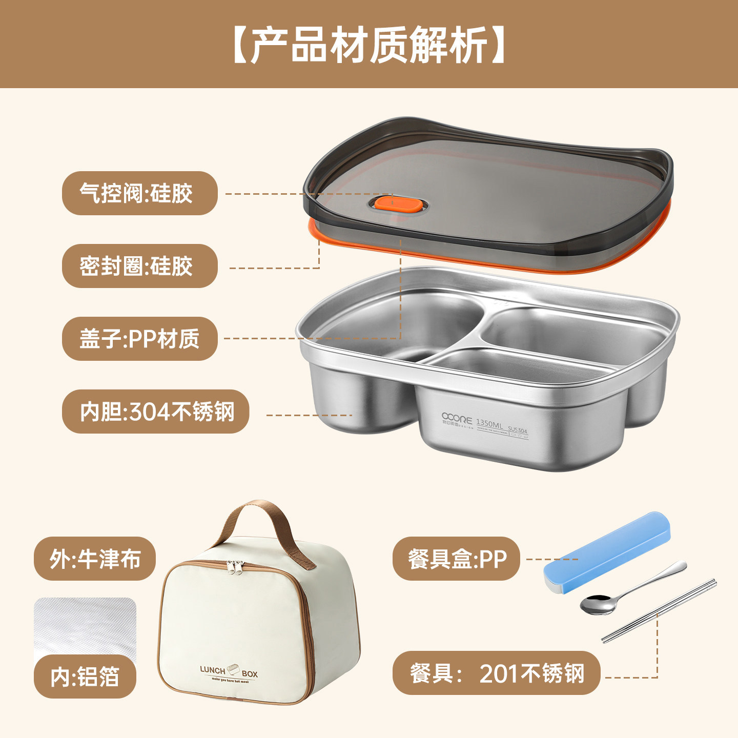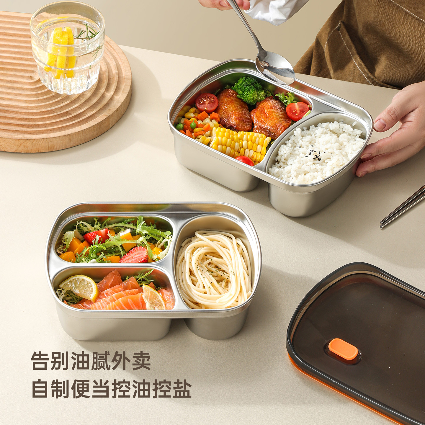 不锈钢保鲜盒分格饭盒上班族便携便当盒微波炉加热餐盒家用密封盒