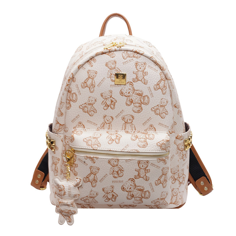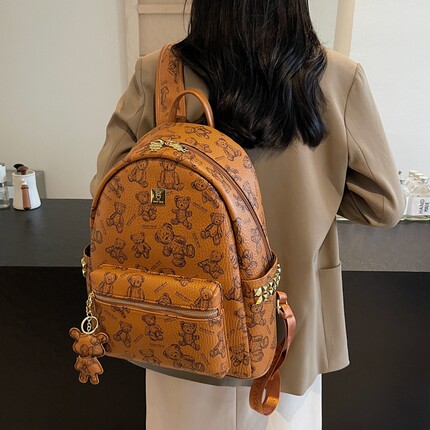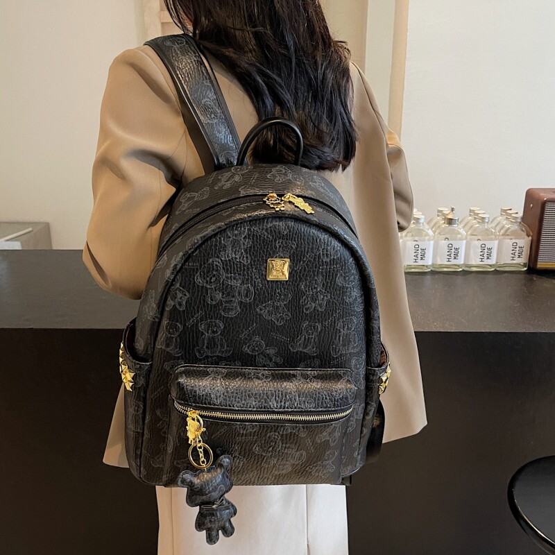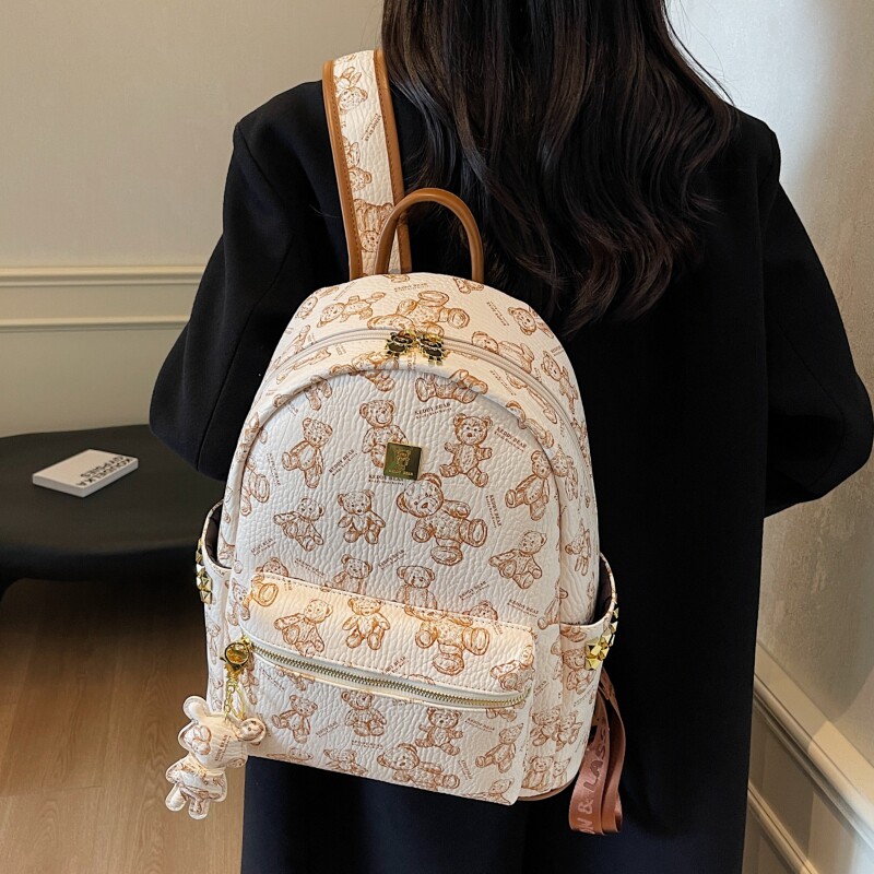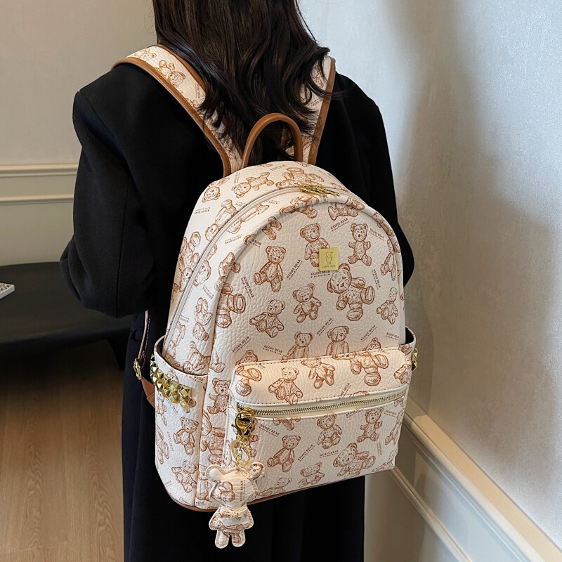 铆钉时尚小众高级感背包女士印花熊通勤双肩包逛街妈咪包书包旅行