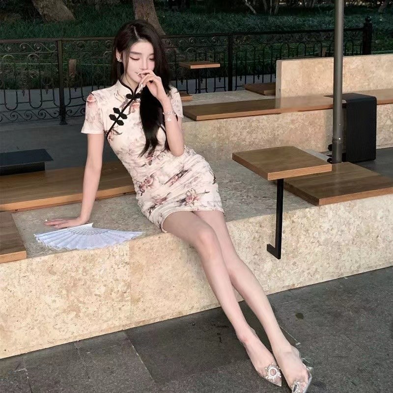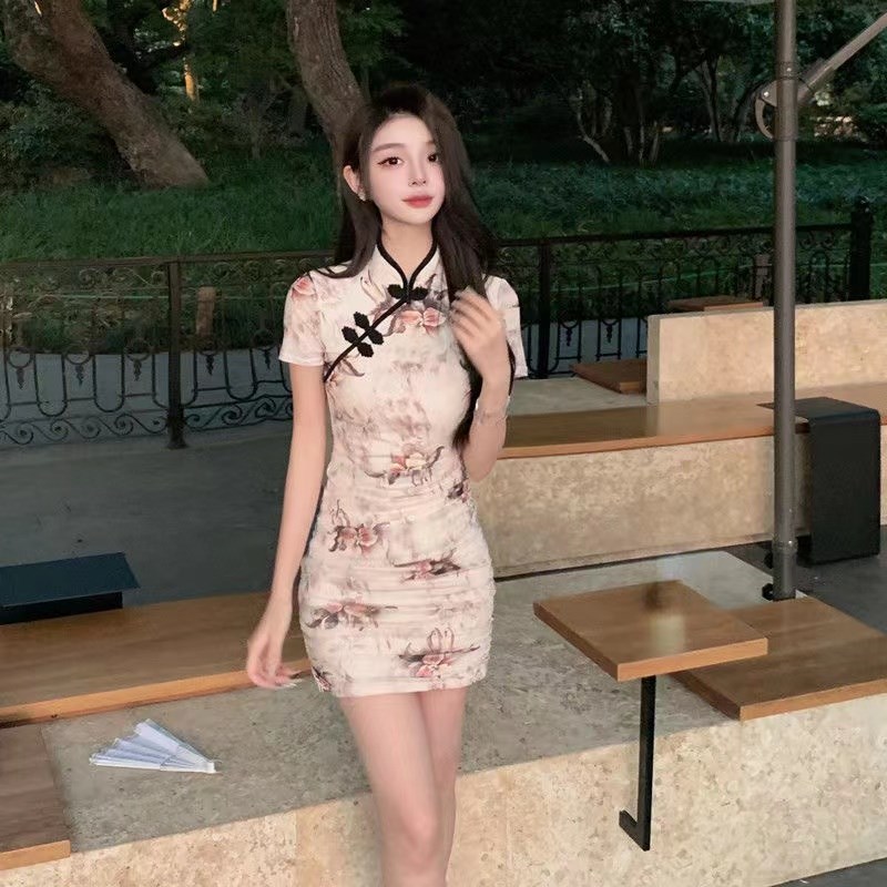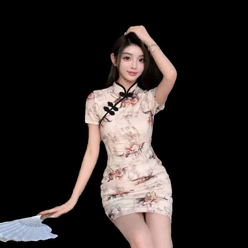 速发时尚性感旗袍年轻款少短款紧身收腰复古改良包臀连衣裙