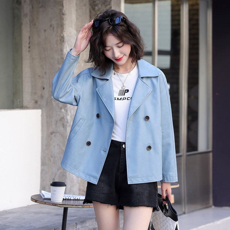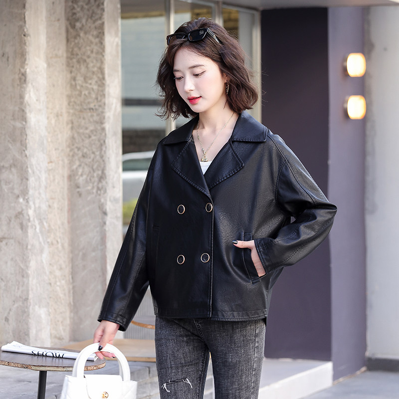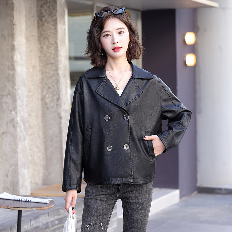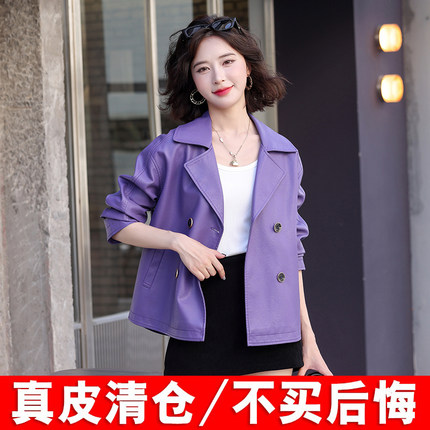 海宁皮衣女短款外套2025春秋新款韩版宽松显瘦绵羊皮机车女士夹克