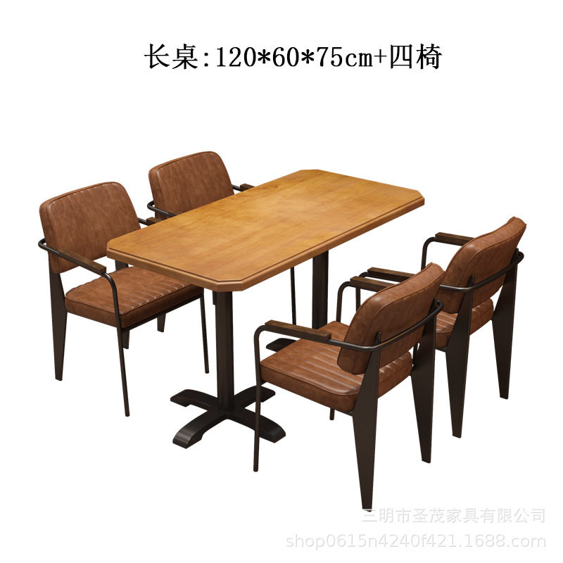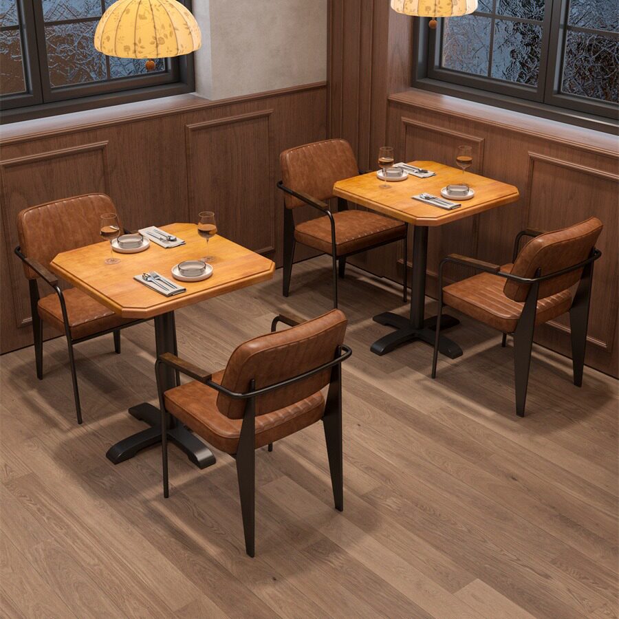 复古实木西餐厅小酒馆餐桌椅咖啡店正方形桌子饭店休闲成套桌椅
