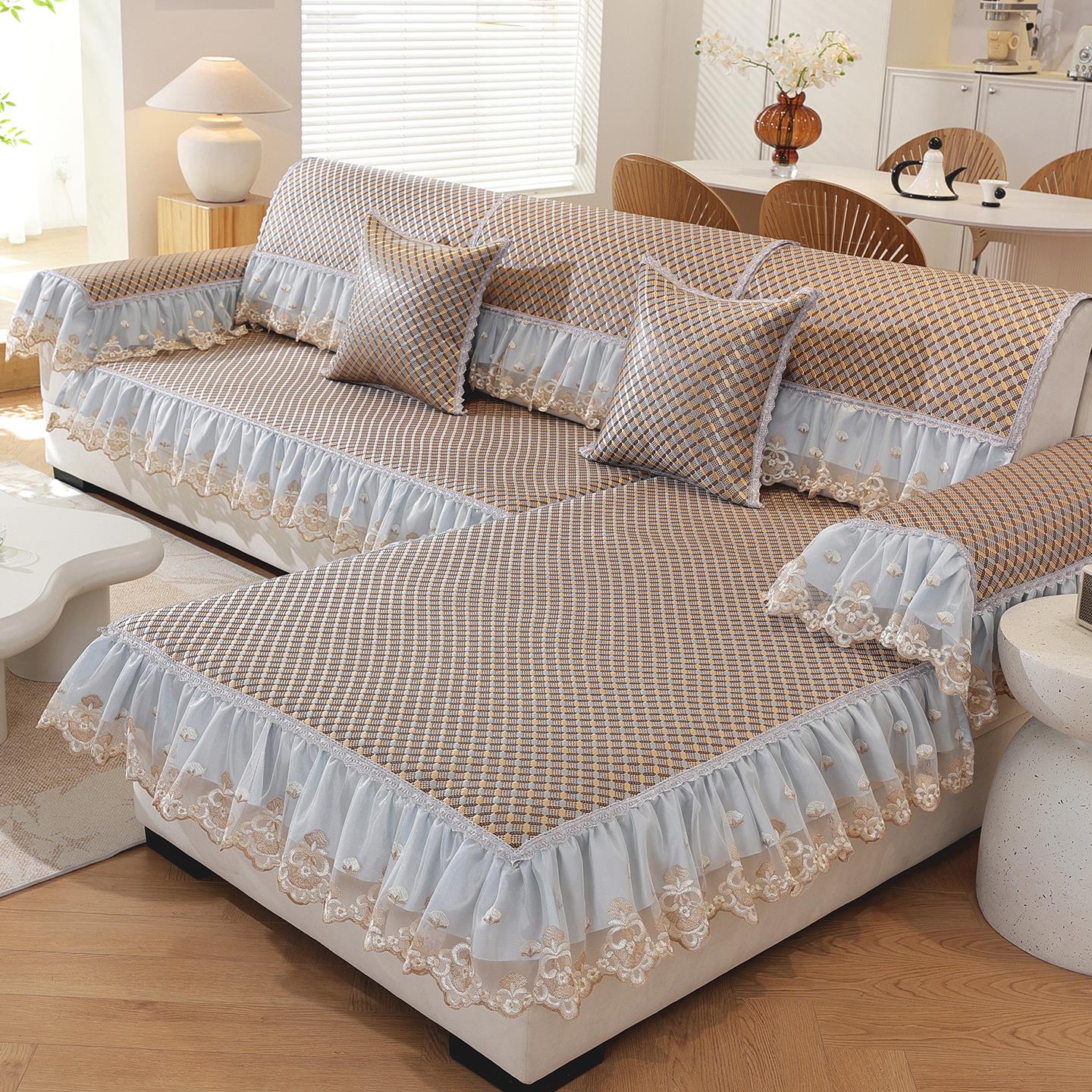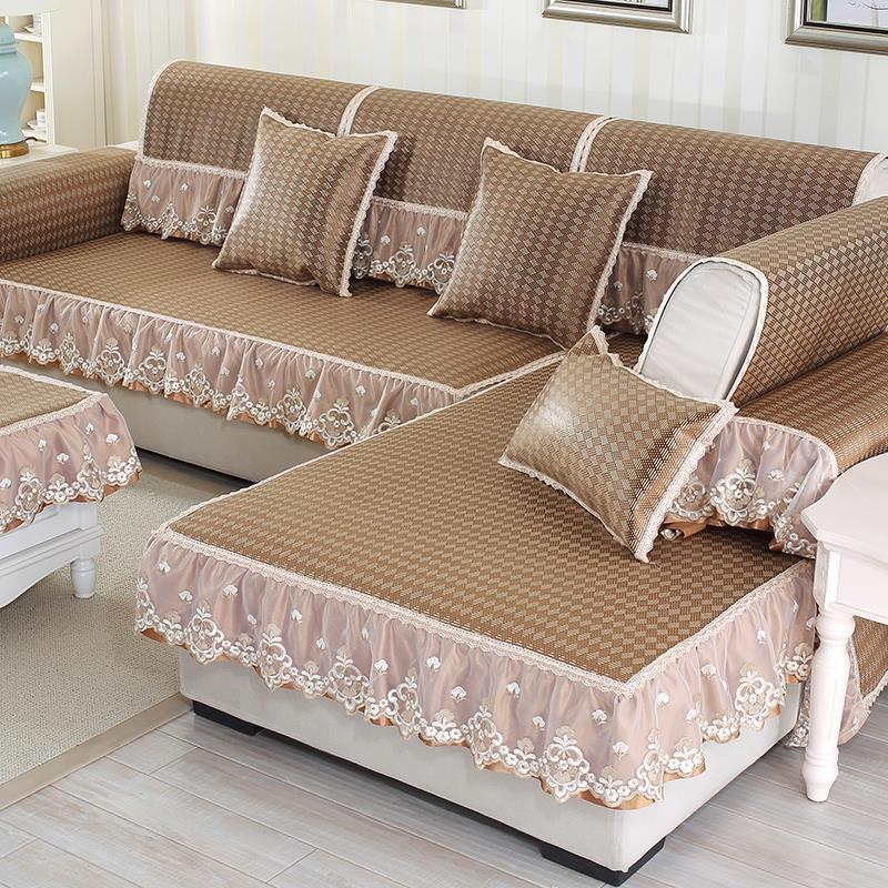 沙发垫夏季冰丝凉席坐垫防滑藤席夏天客厅咖啡色凉垫沙发套巾定做