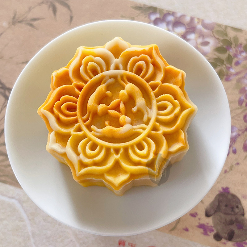 75g敦煌风中秋节月饼模具三兔共耳文创糕点工具立体兔子莲花磨具