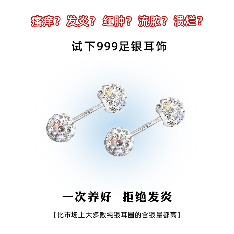 s999纯银双珠小众耳钉