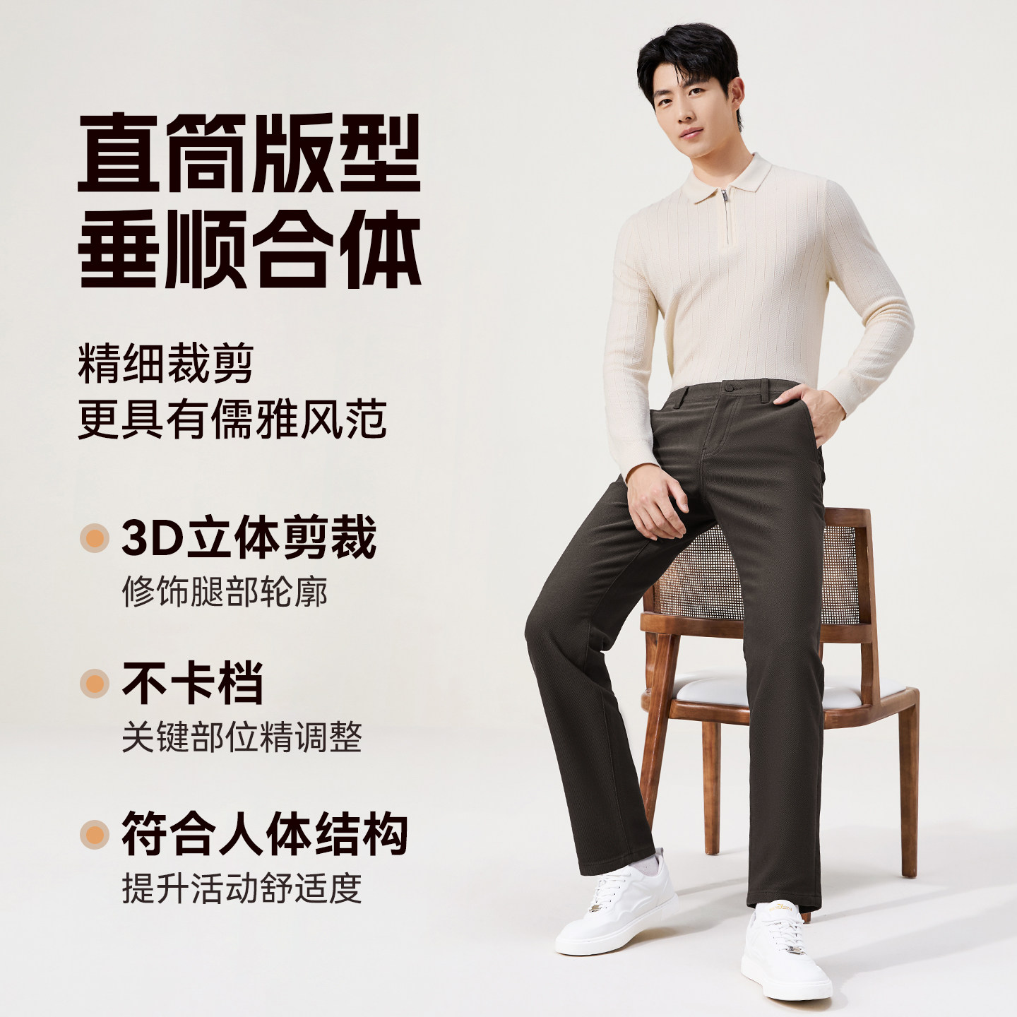 【含羊毛】柒牌斜纹肌理面料休闲裤2025秋冬新款男士通勤保暖男裤