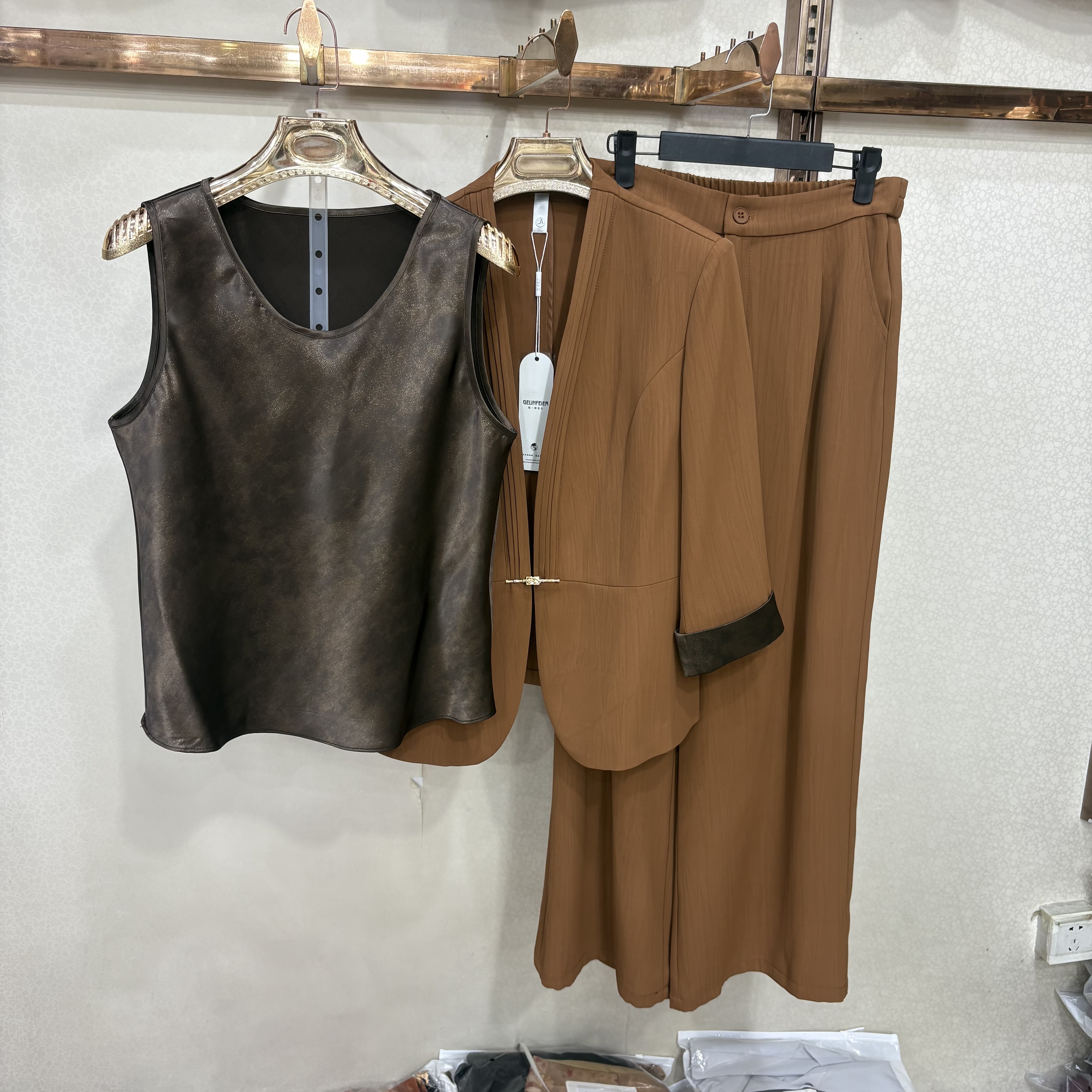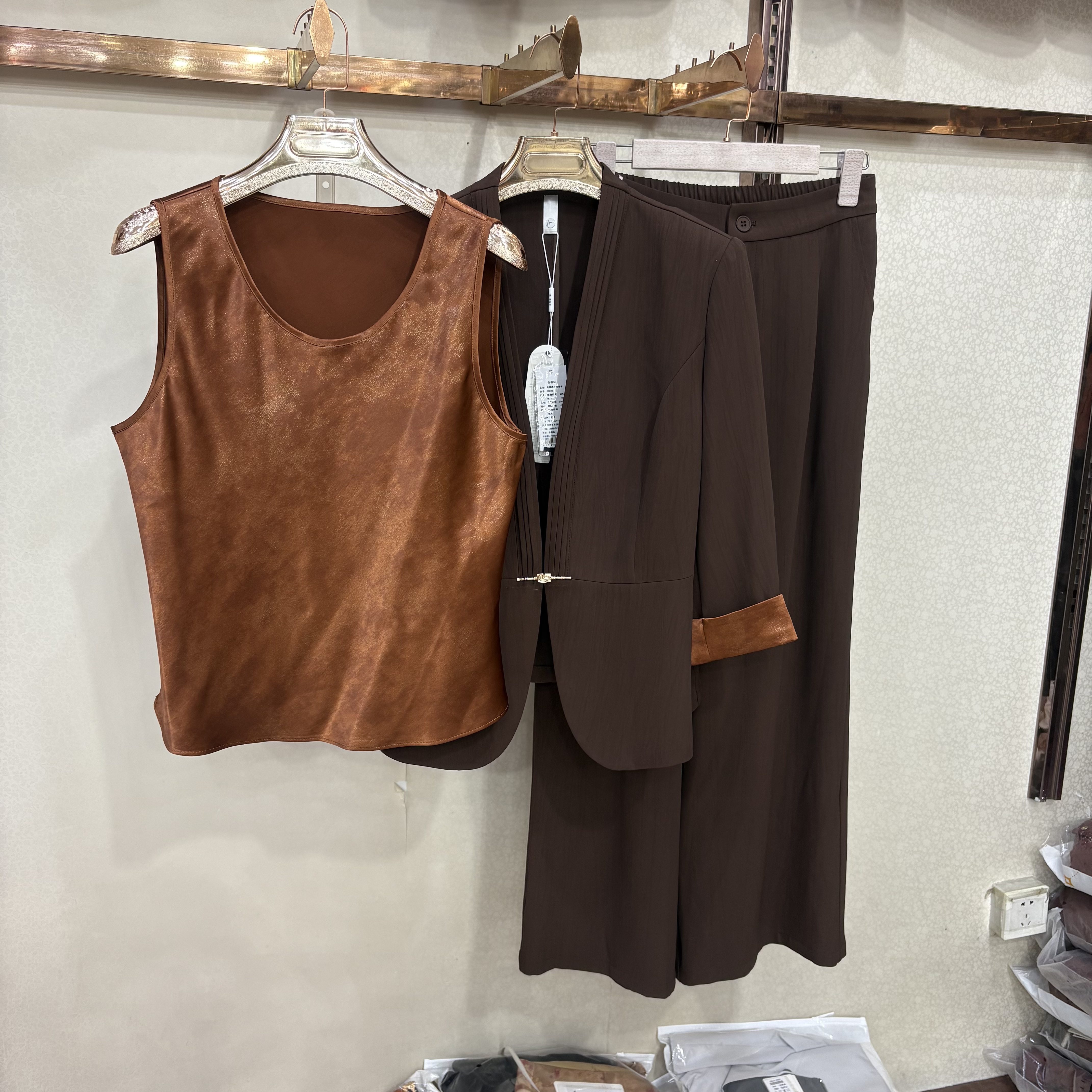 商场同款86028春季新款时尚西装背心直筒裤三件套职业休闲套裤女