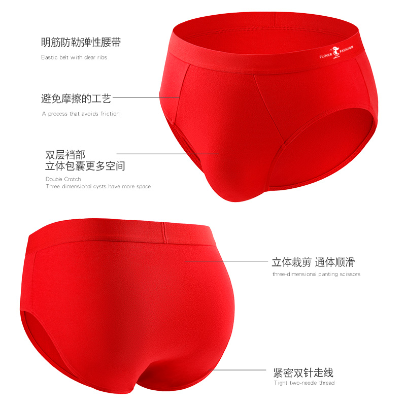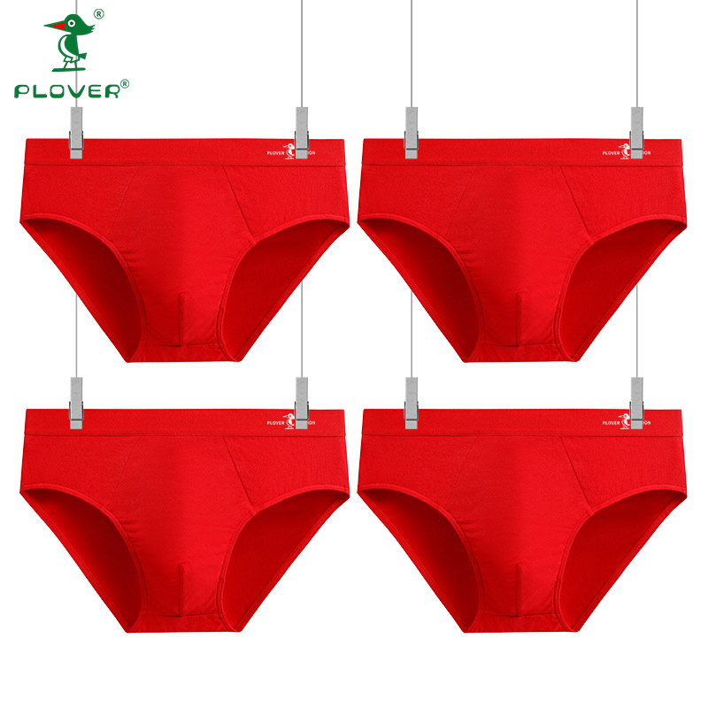 PLOVER正品本命年红色三角裤男纯棉内裤男士纯色亲肤裤头中腰透气