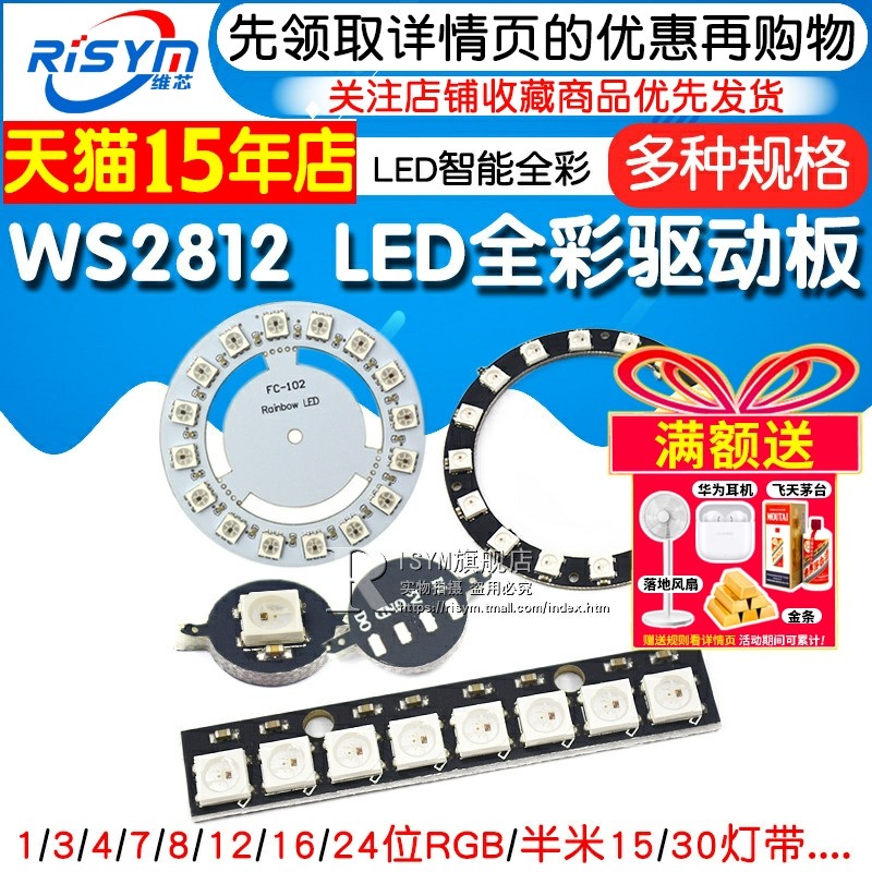 WS2812 5050 RGB LED内置全彩驱动幻彩灯开发板模块方形圆形LED灯
