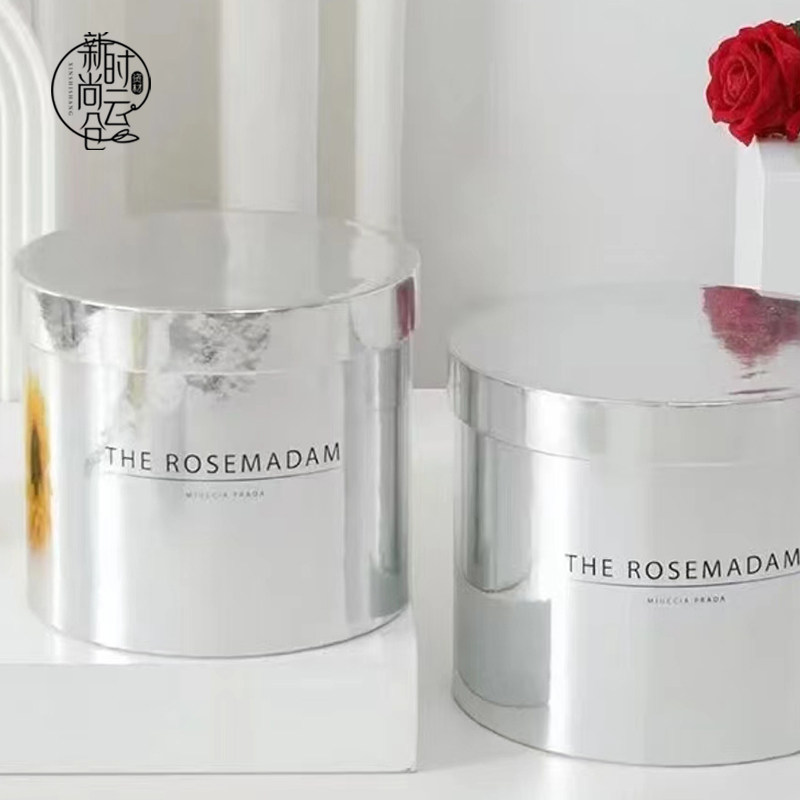 欧式鲜花抱抱桶花束包装套三礼盒花盒圆形镜面银色花艺包装资材