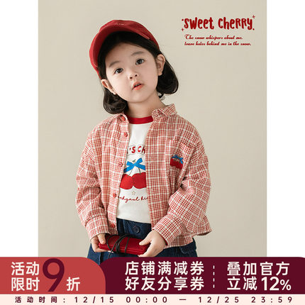 幼悠女童卡通绣标格子衬衫2025春秋儿童洋气可爱亲肤透气宽松外套