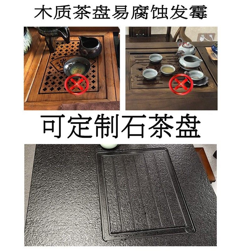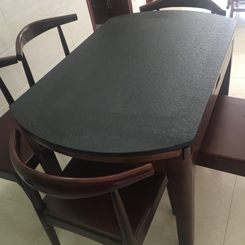 火烧石台面定制大理石餐桌电视柜功夫台面茶盘黑色家用转盘室外