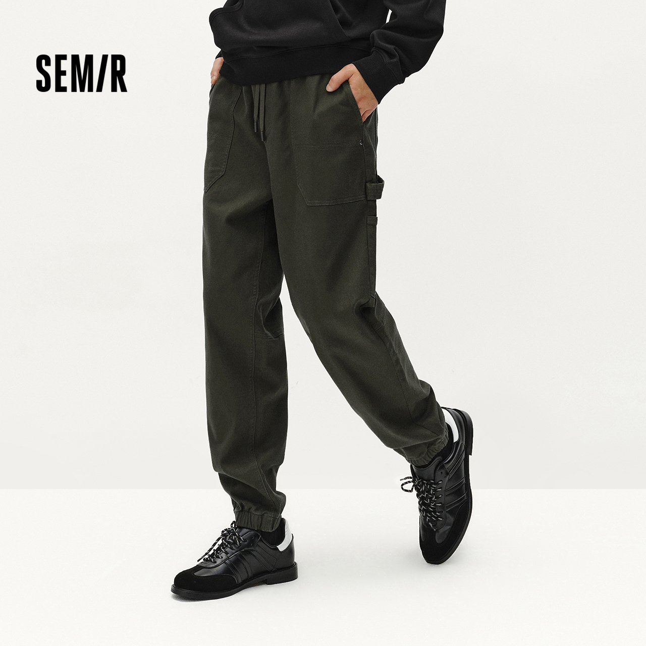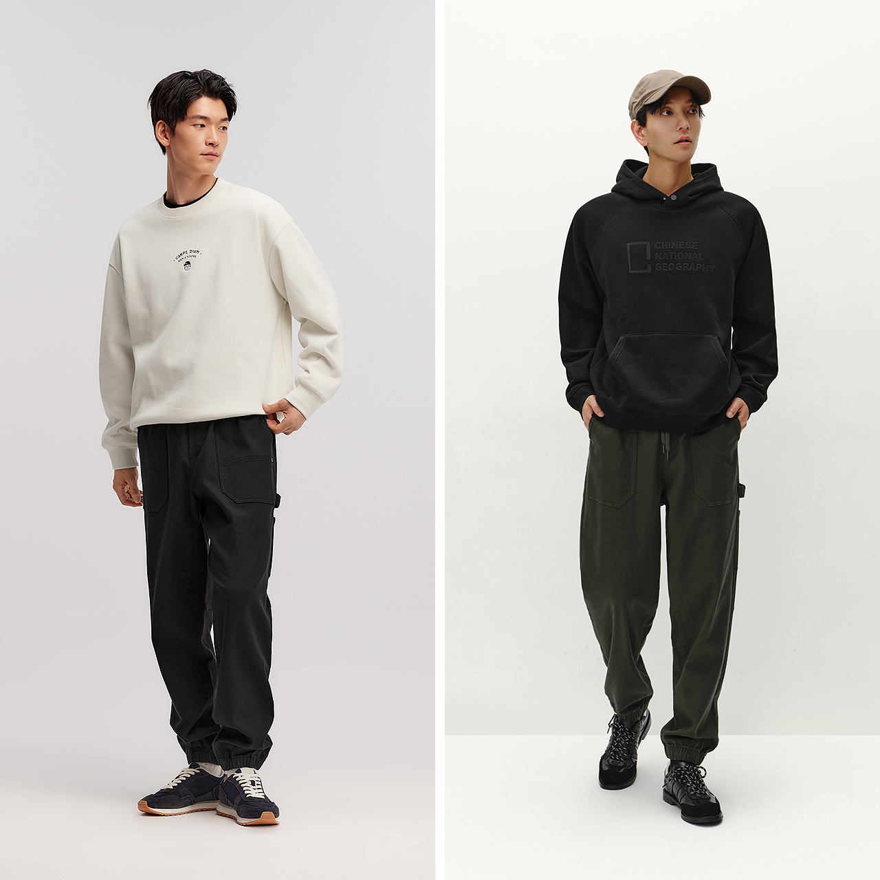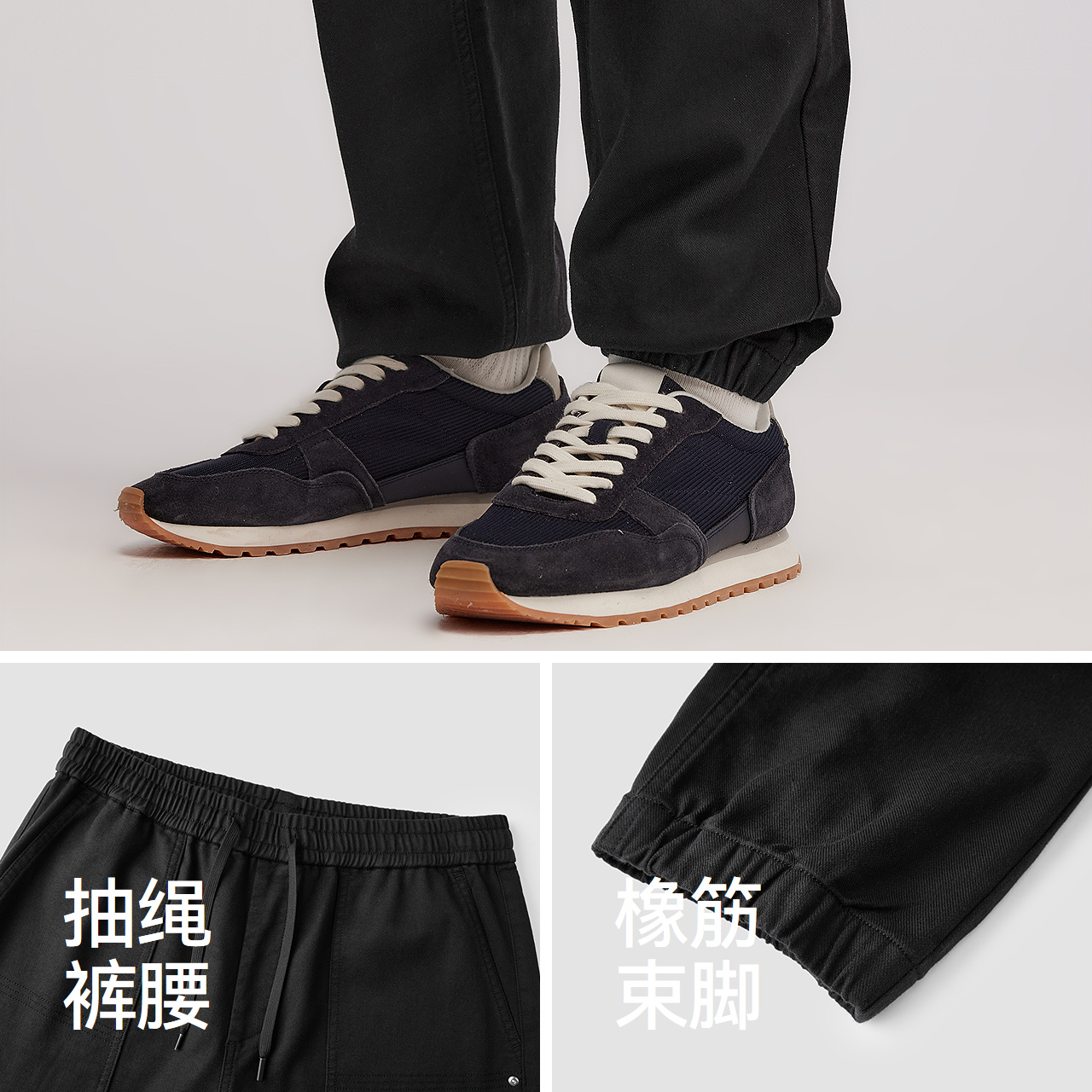 森马休闲裤男2025冬季磨毛工装裤时尚简约宽松束脚弹力松紧腰长裤