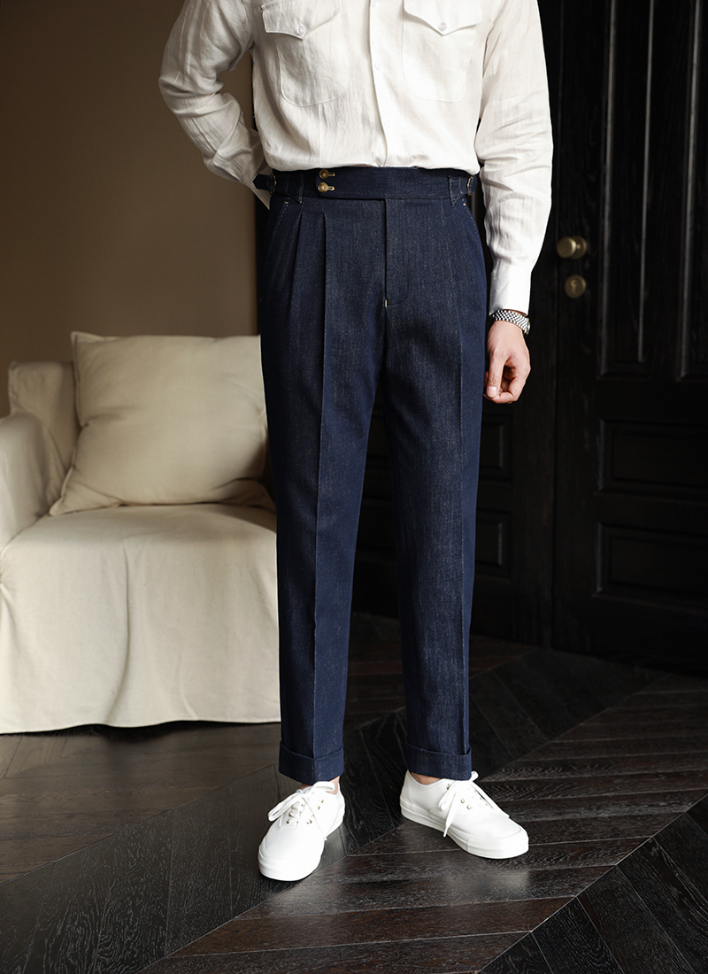 直筒牛仔裤男春季巴黎扣垂感免烫休闲裤那不勒斯商务绅士高腰裤子