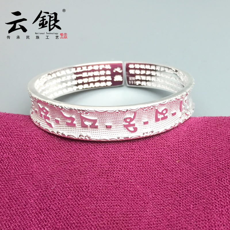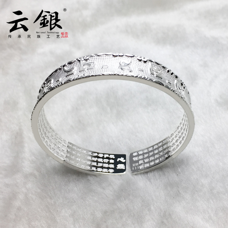 云银云银足银999纯银手镯云南雪花银镯子首饰六字箴言心经手镯