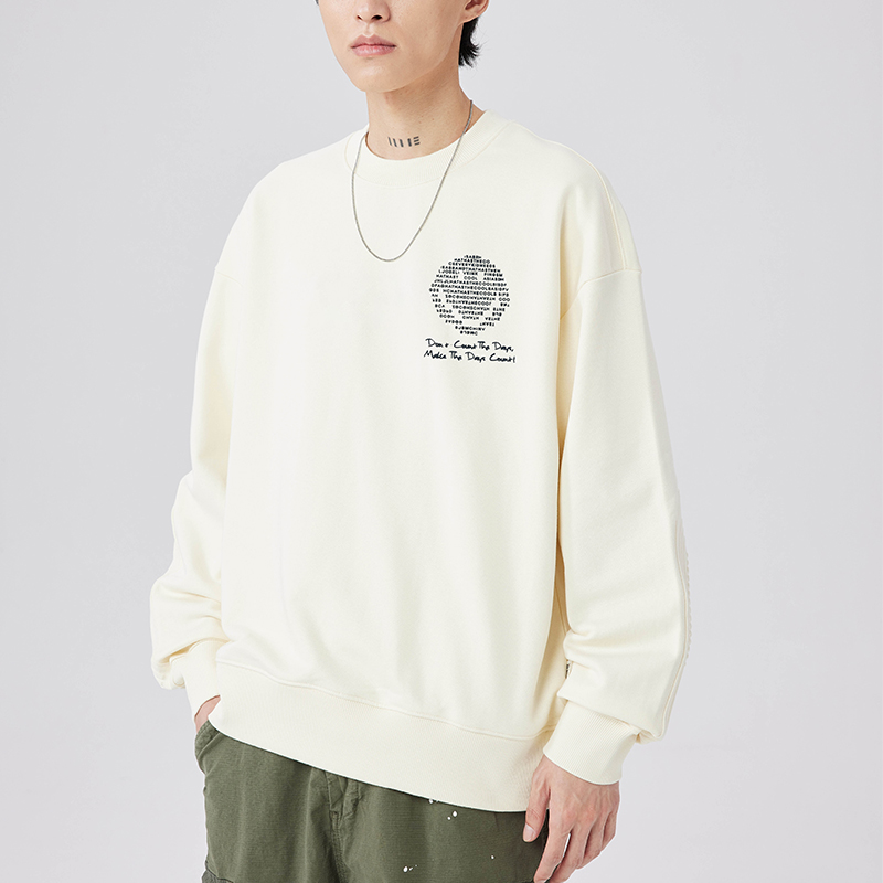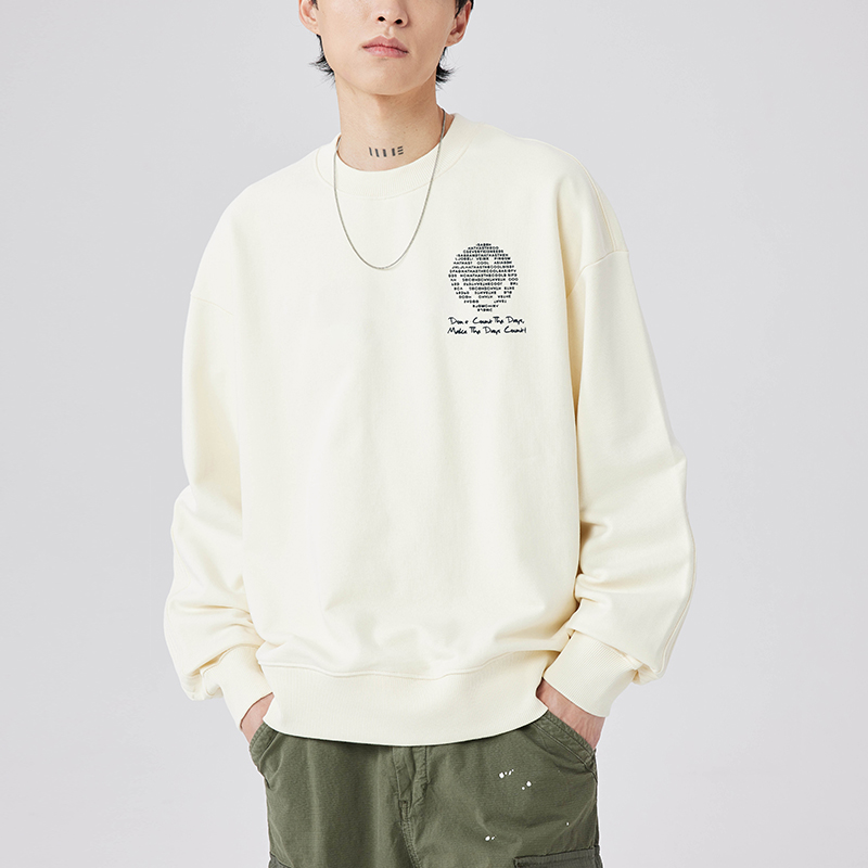 春秋季新款杏色卫衣男宽松圆领印花套头休闲青年上衣潮牌长袖外套