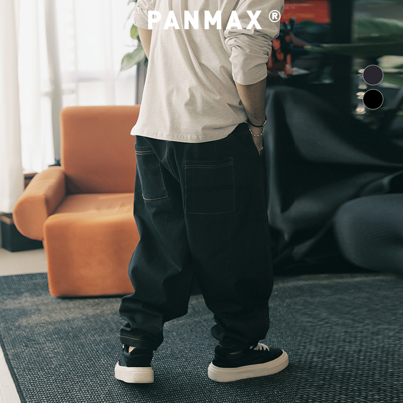 PANMAX大码男装潮牌秋季新款宽松弯刀阔腿直筒显瘦牛仔长裤