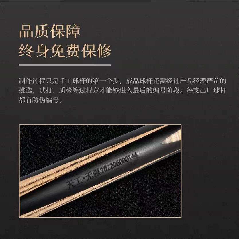 天工台球杆无疆小头通杆手工斯诺克球杆中式黑八8桌球杆实木球杆