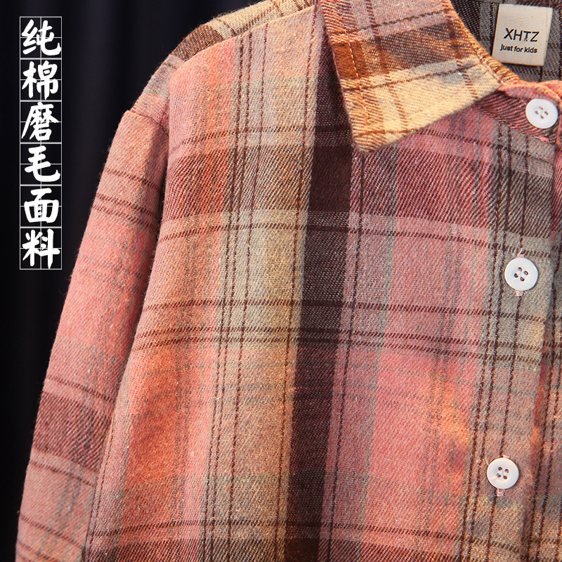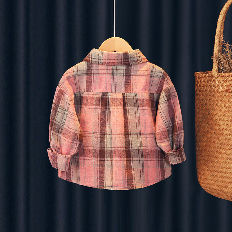 女童衬衫春秋款2025新款小女孩长袖纯棉上衣儿童洋气时髦格子衬衣