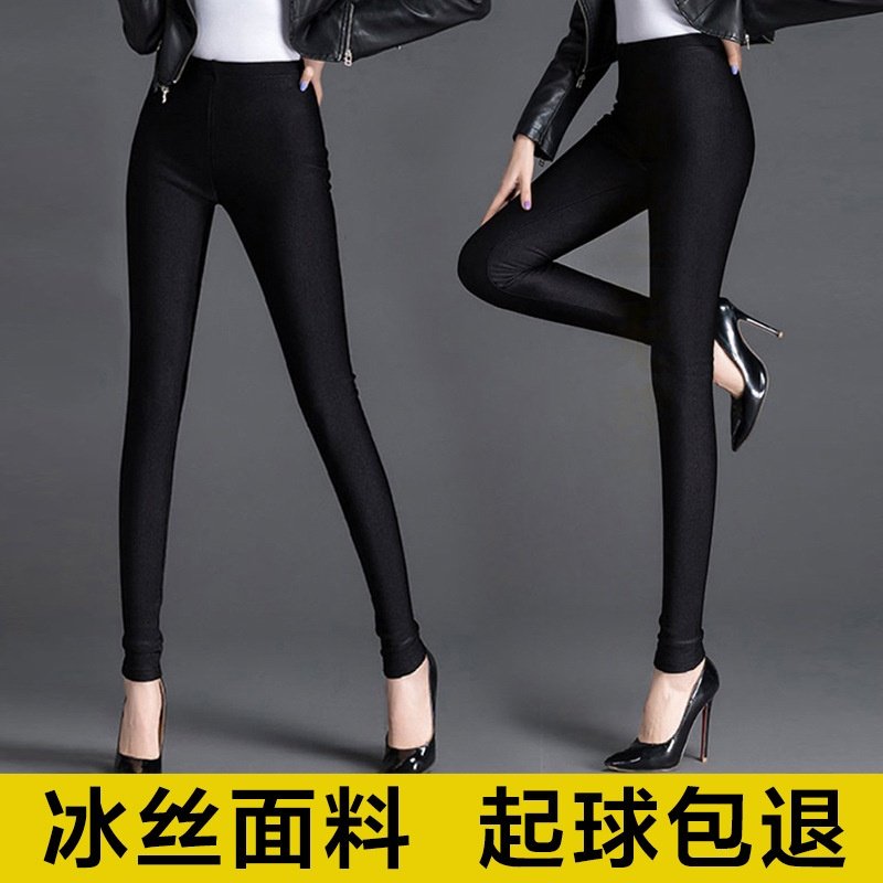 2018新款春秋光泽裤打底裤外穿女士黑色裤袜高腰踩脚裤小脚裤薄款