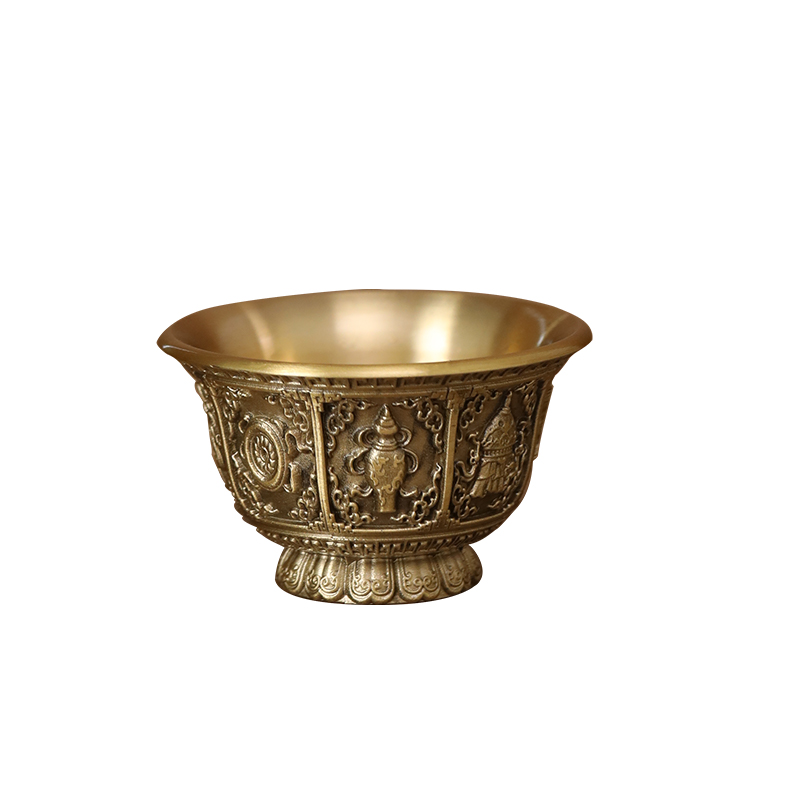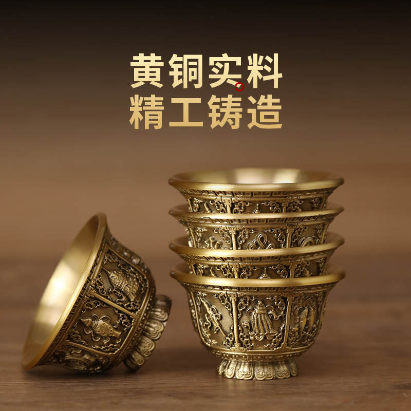 黄铜八吉祥供水杯家用供奉圣水杯供碗八供净水杯财神观音佛前摆件