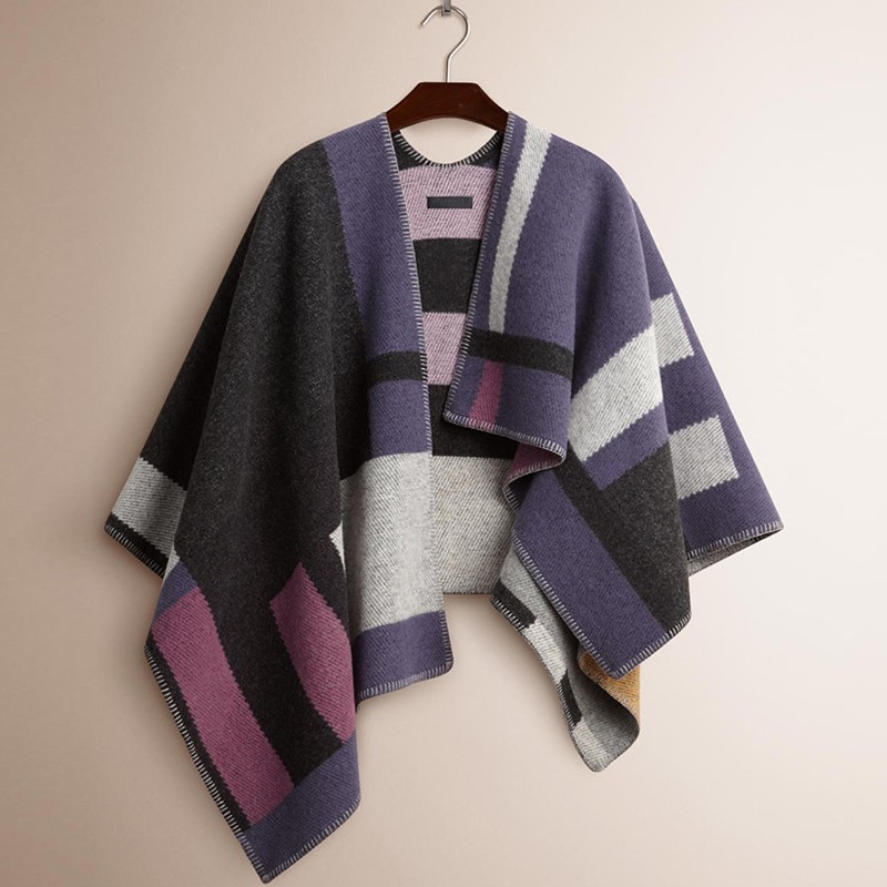 明星同款B家羊毛毛衣加厚斗篷披肩围巾两用披风秋冬季针织外套女