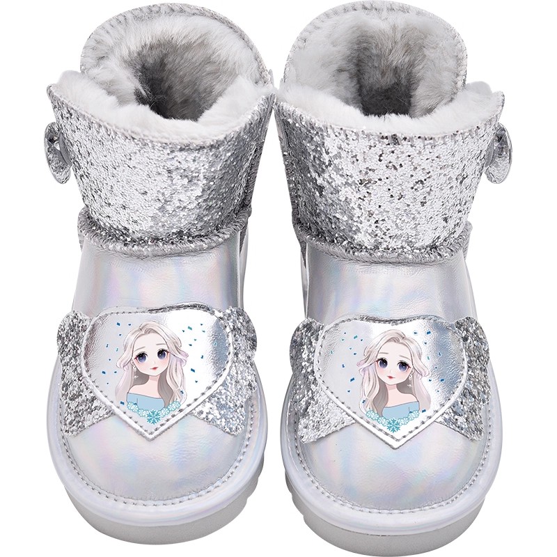 女童雪地靴防水防滑儿童棉鞋真皮棉靴女孩冬鞋加绒宝宝雪地棉靴子