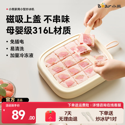 小熊炒酸奶机迷你制冰机家用小型冰淇淋机食品级不锈钢炒冰机