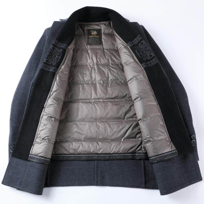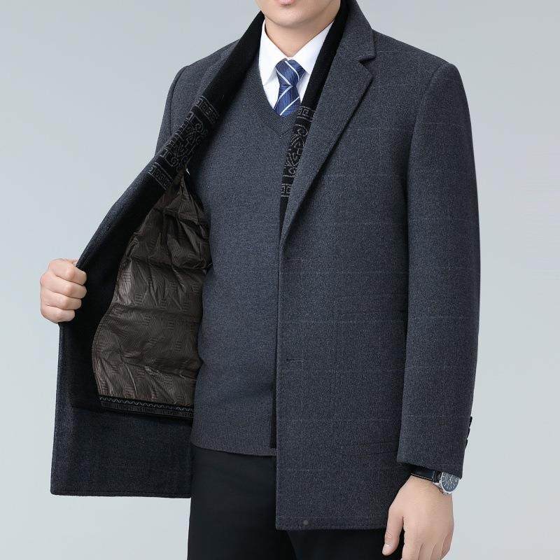 双面羊西绒大衣男装领内冬季加厚带围巾绒绒风衣F16中年胆羊毛呢