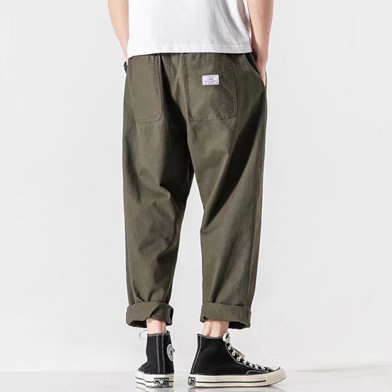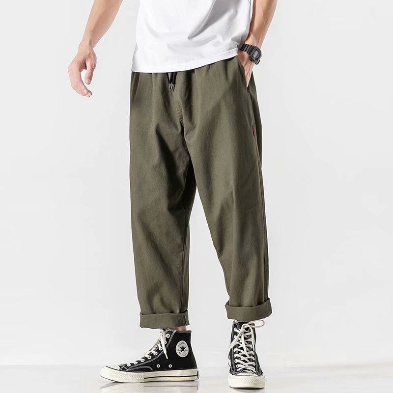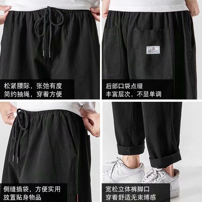 春秋款裤子男日系宽松直筒休闲裤潮流百搭潮牌大码工装纯棉九分裤