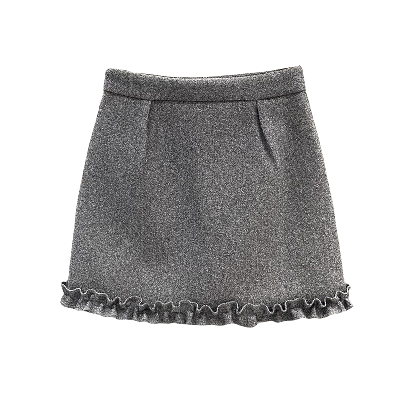 【清仓不退换】花边毛呢半身裙女减龄高腰显瘦A字包臀短裙潮