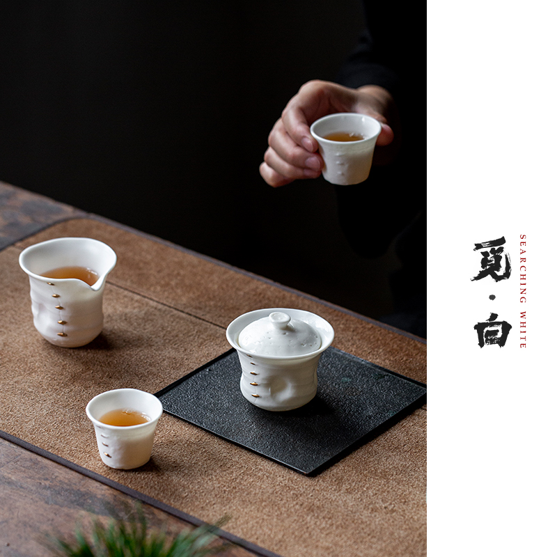 觅白言物侘寂素烧羊脂玉瓷茶杯
