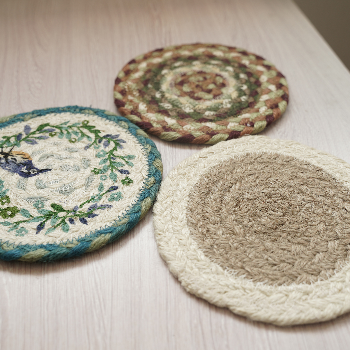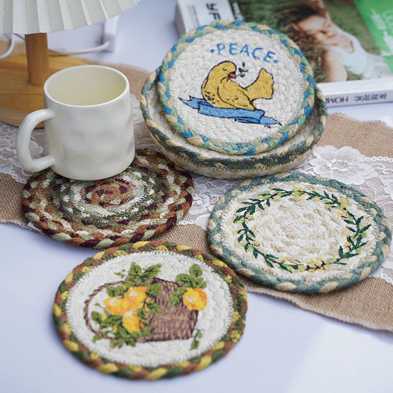 素色手工编织泡茶杯垫餐桌隔热垫耐高温沙锅垫美式餐垫家用棉麻垫