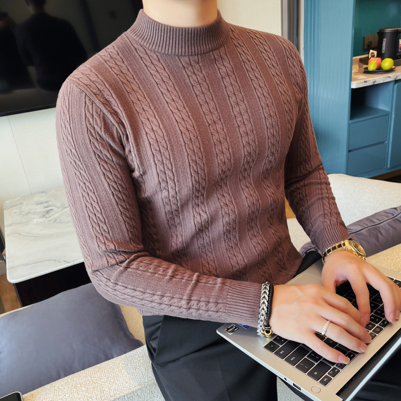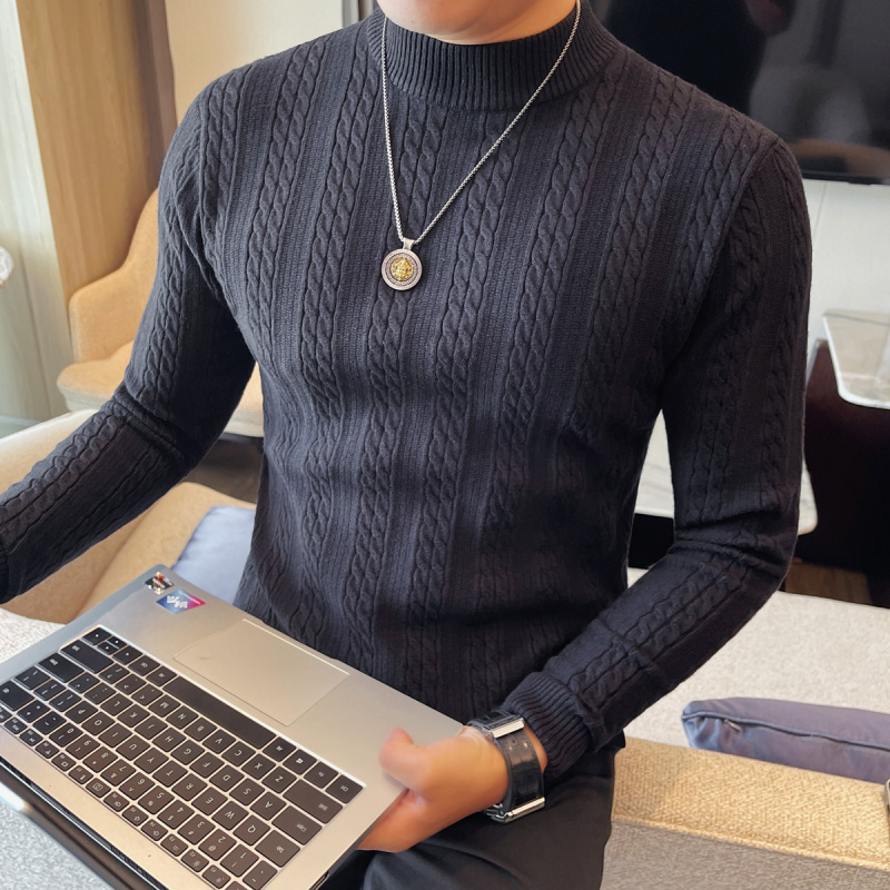 xs小码小号男社会小伙半高领长袖针织衫秋冬新款修身纯色毛衣学生