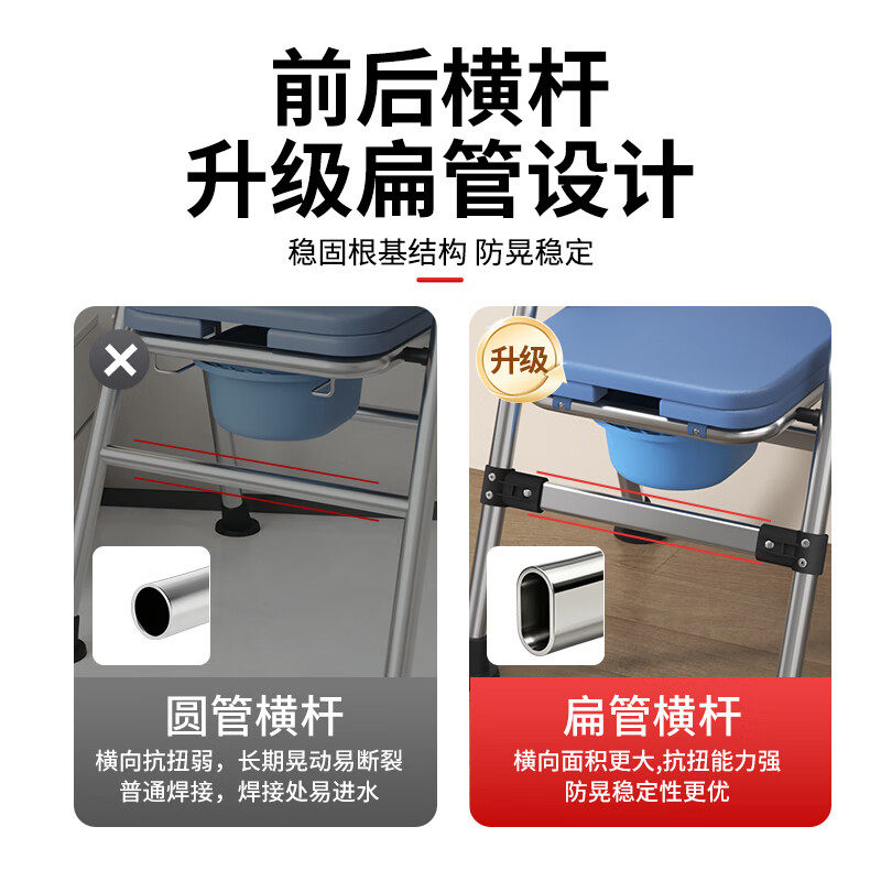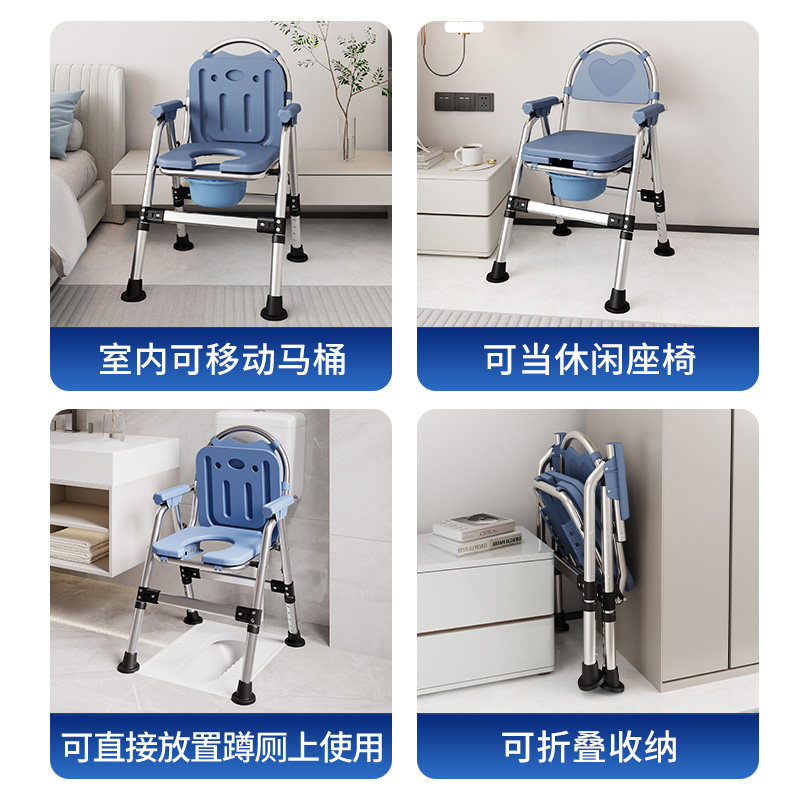 坐便器老人移动马桶可折叠不锈钢坐便椅家用厕所凳子残疾人洗澡椅
