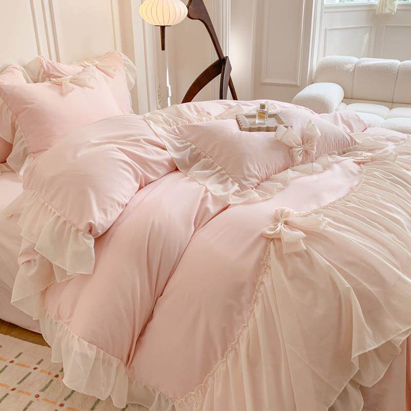 裸睡100604全棉公风水洗床上四件套棉韩式柔纯棉花边被软套主床单
