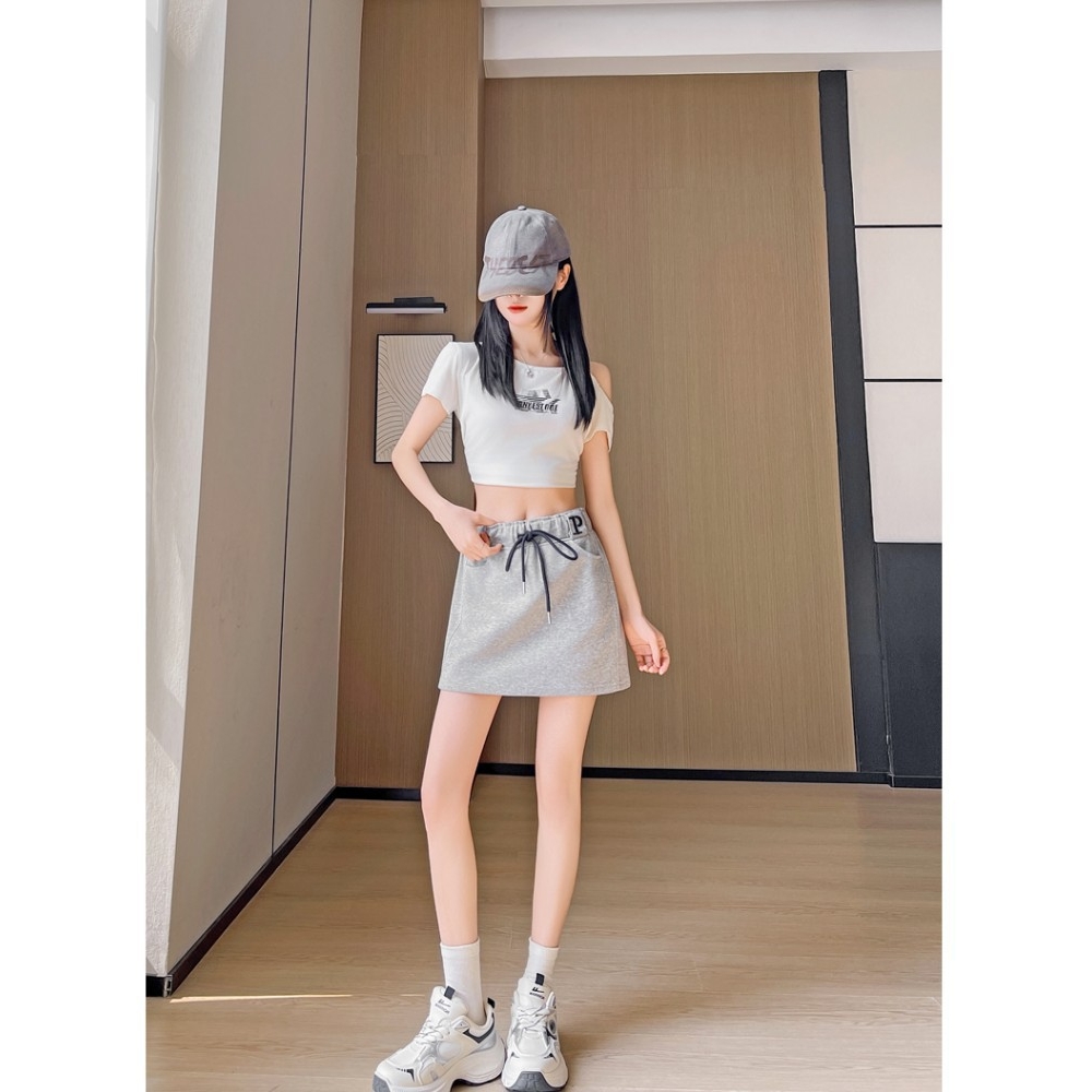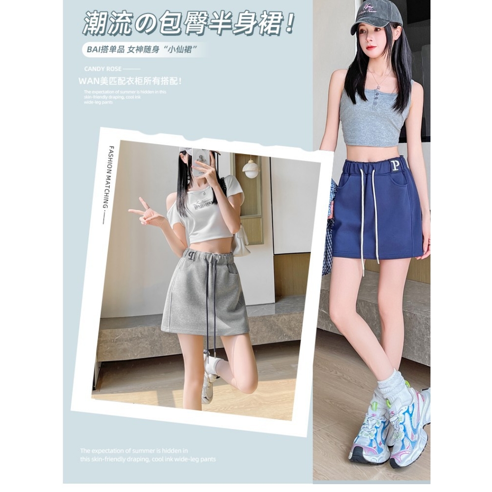 灰色辣妹短款运动卫裙裤女2025春夏季新款高腰短裤包臀a字半身裙