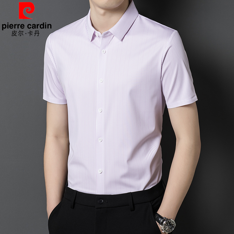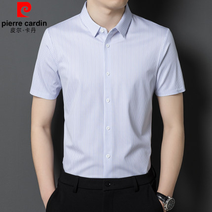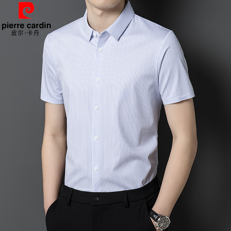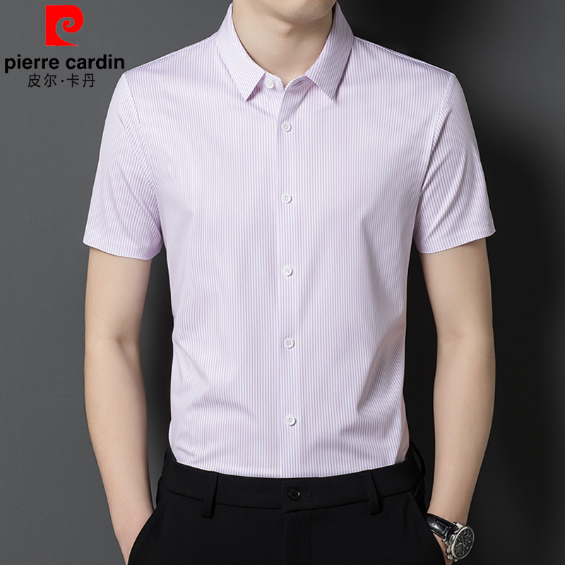 皮尔卡丹高端桑蚕丝男士短袖衬衫免烫抗皱商务休闲夏季男冰丝衬衣