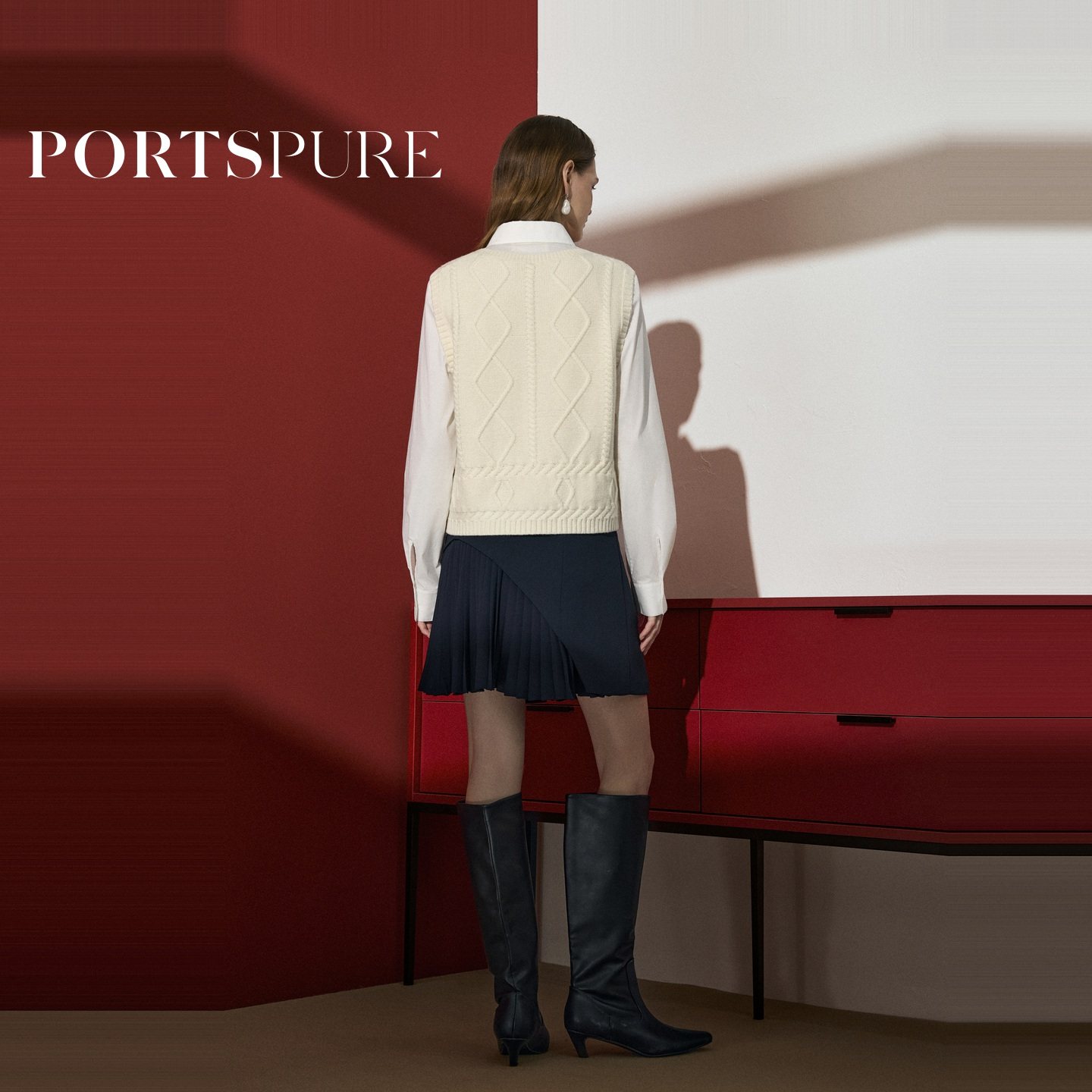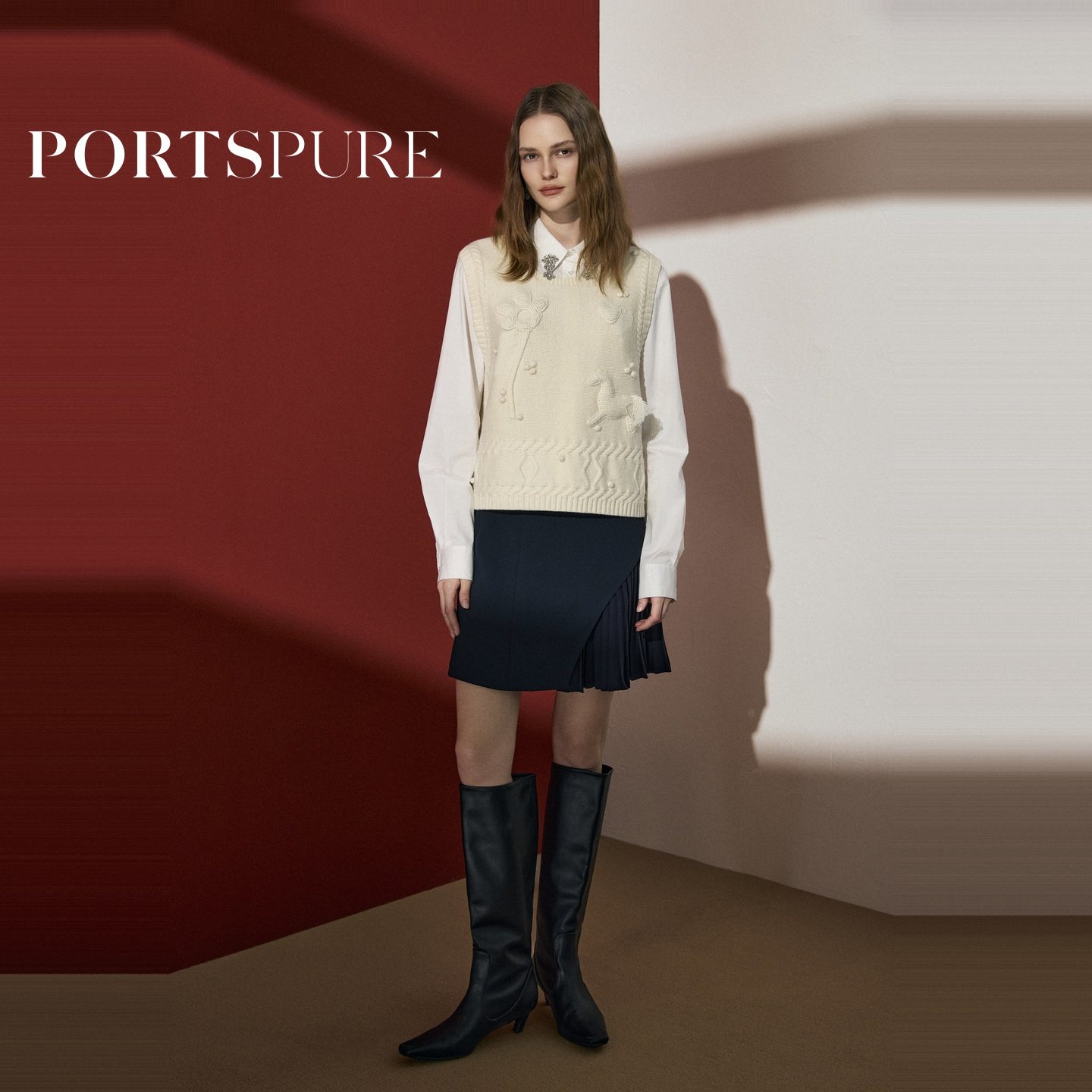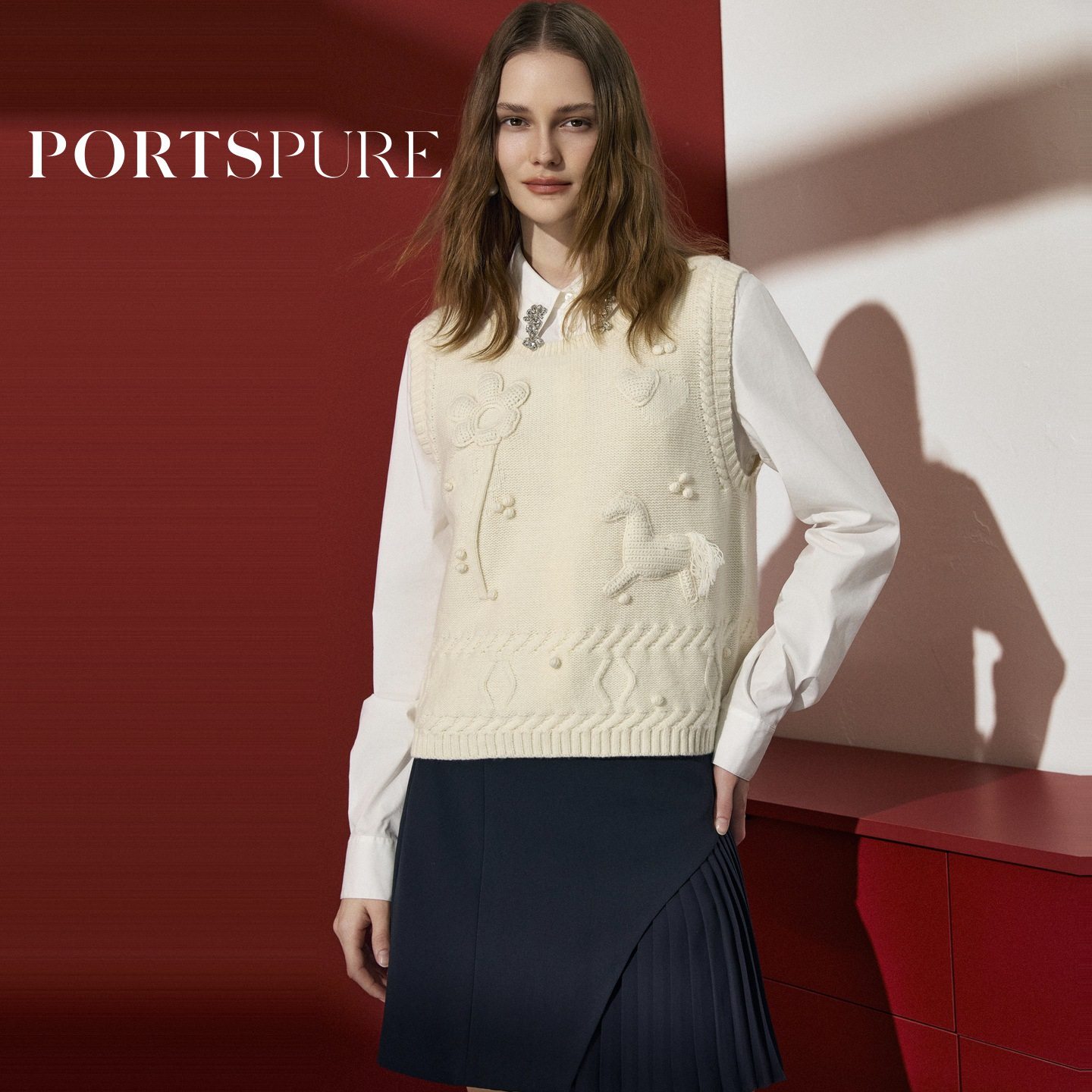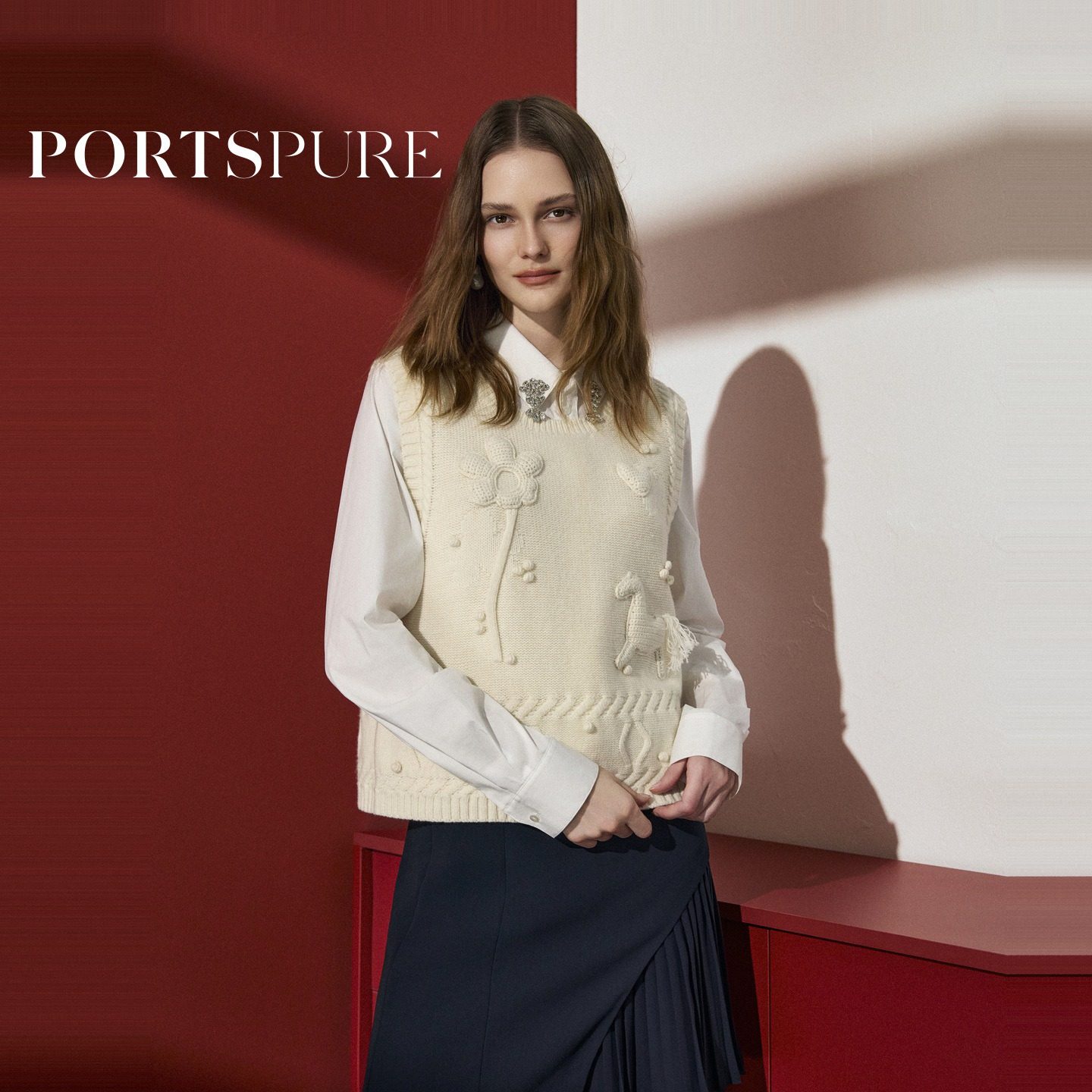 宝姿PORTSPURE女装2026早春新品花卉立体勾针绣圆领针织马甲