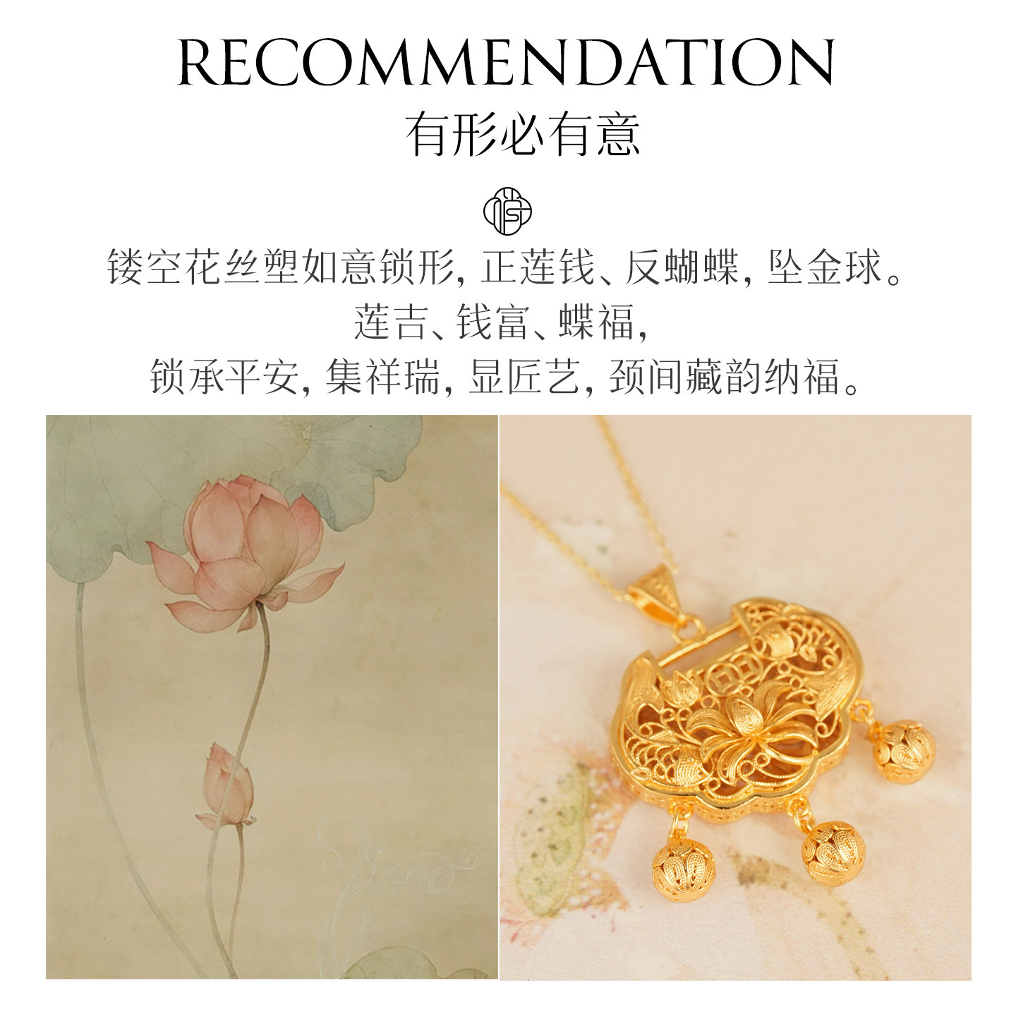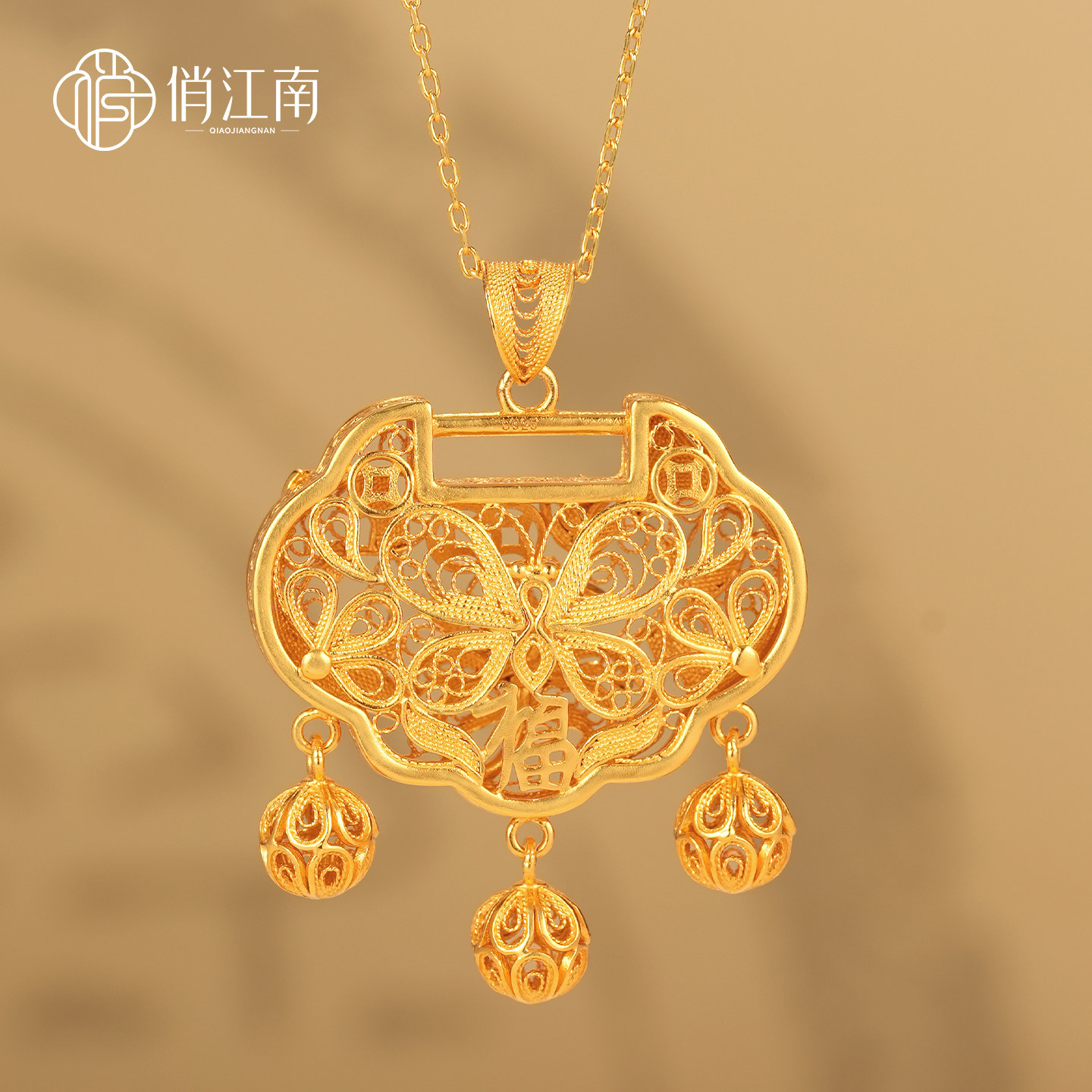 非遗花丝镂空蝴蝶锦鲤鎏金平安锁
