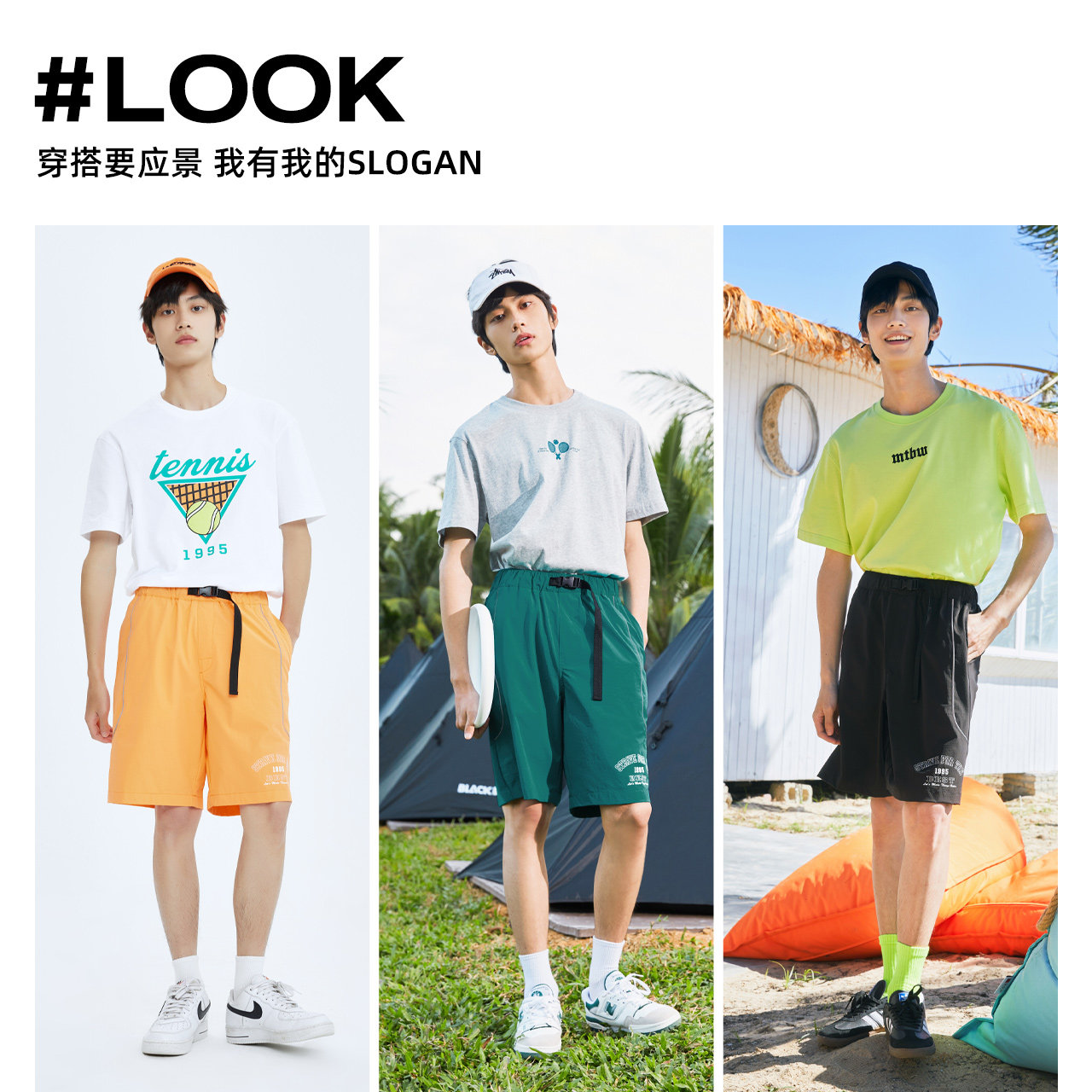 美特斯邦威运动休闲裤男士2023夏季新款字母印花学院风五分裤男士