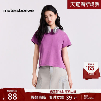 [商场同款]美特斯邦威T恤女25夏新潮流柔软纯棉洗水字母印花体恤