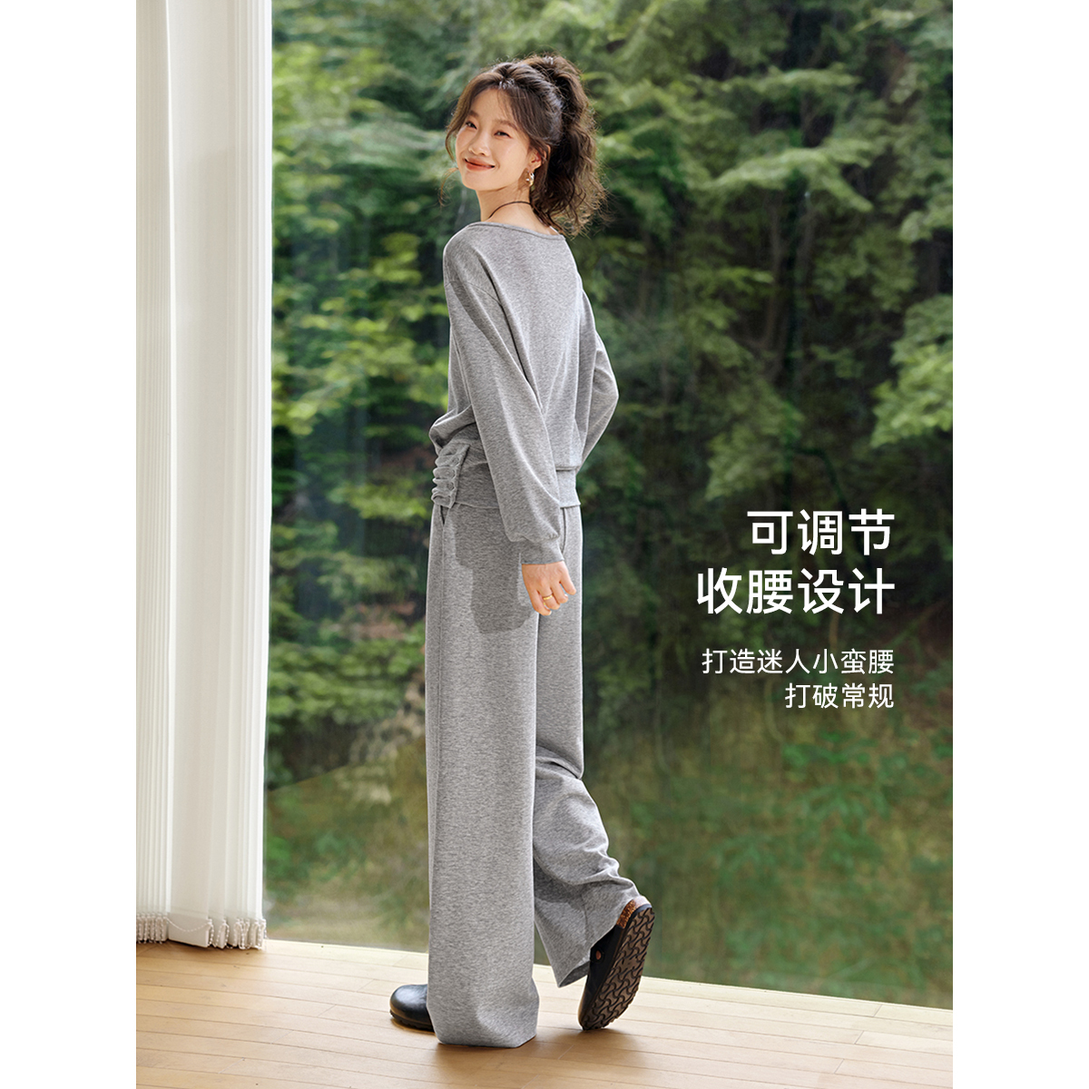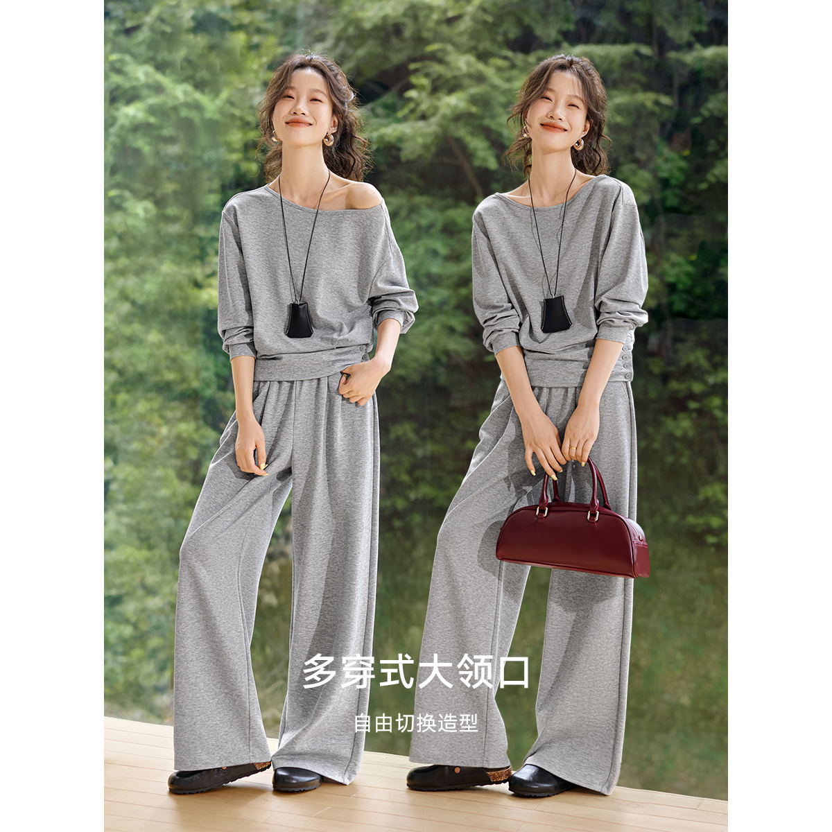沫晗依美空气棉感休闲两件套2025秋季新款收腰显瘦时髦阔腿裤套装