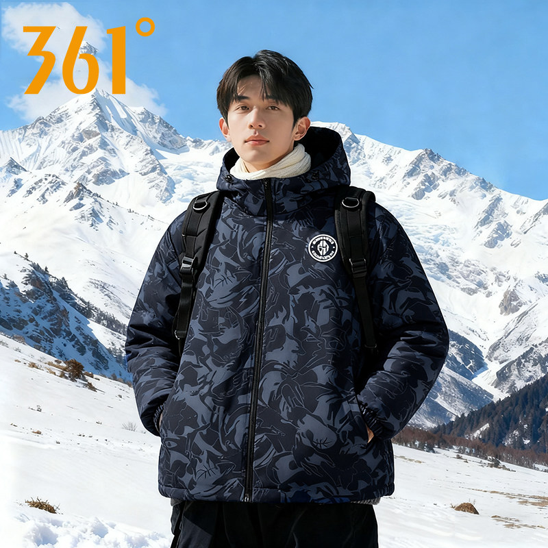 361度羽绒服男短款2025年冬季新款加厚保暖连帽迷彩外套潮流男装