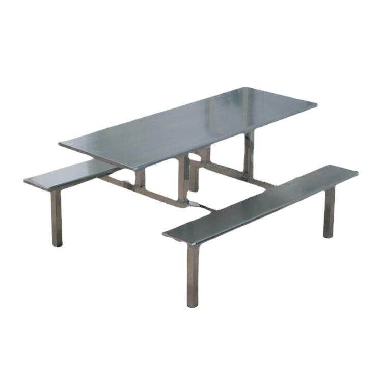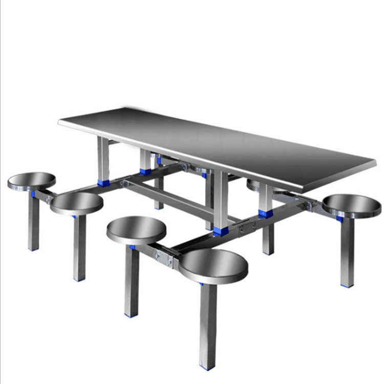 工地食堂连体餐桌 工厂餐厅不锈钢快餐桌4人6人8人组合餐桌香槟色