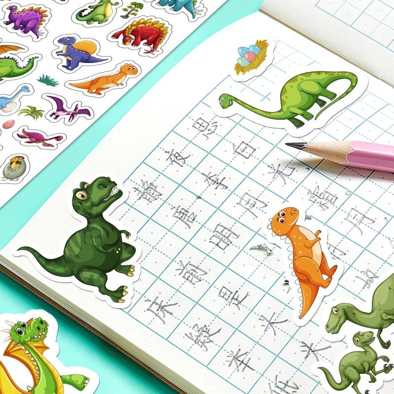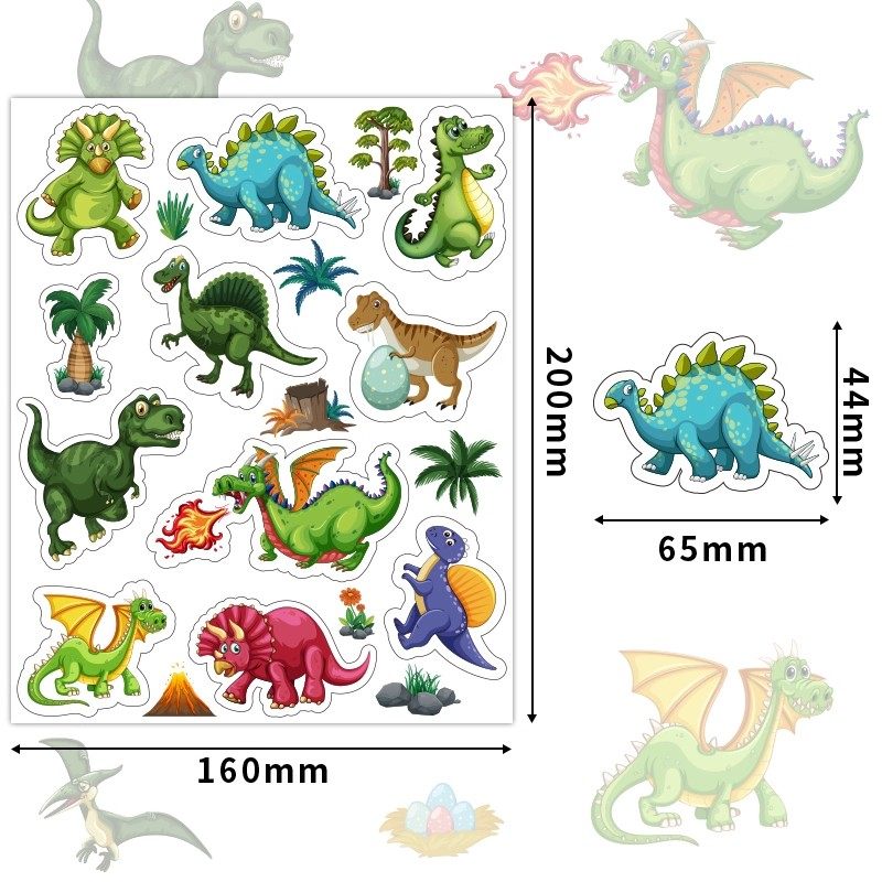 卡通侏罗纪恐龙贴纸霸王龙三角龙远古动物奖励学习装饰文具防水贴