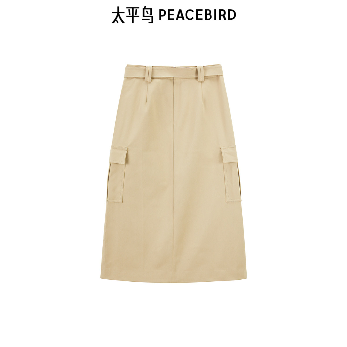 太平鸟女装工装风半身裙卡其色大口袋中长款裙子修身直筒裙