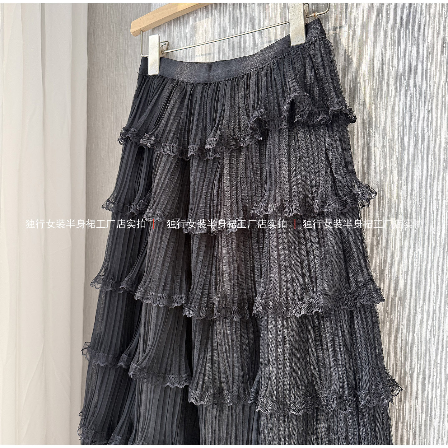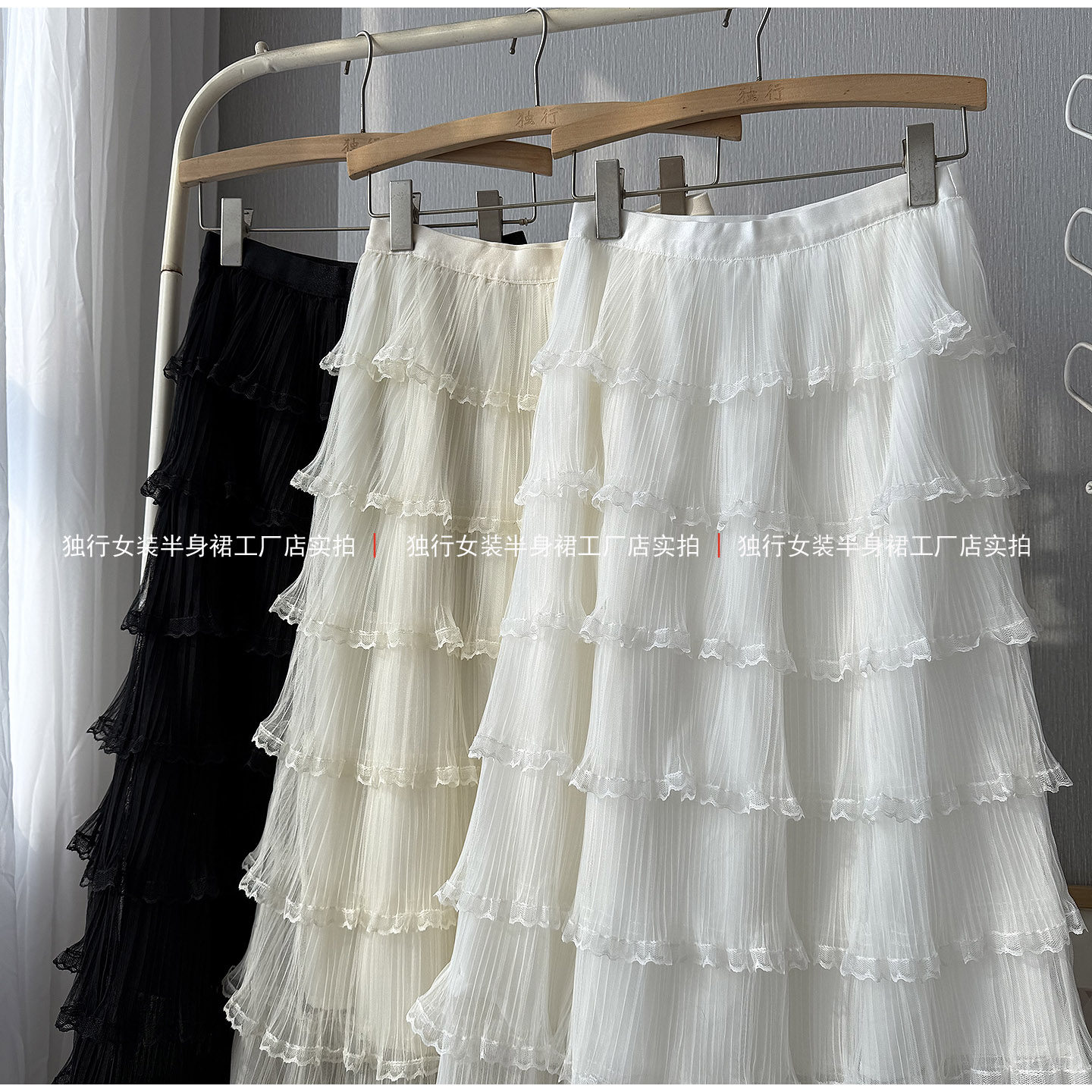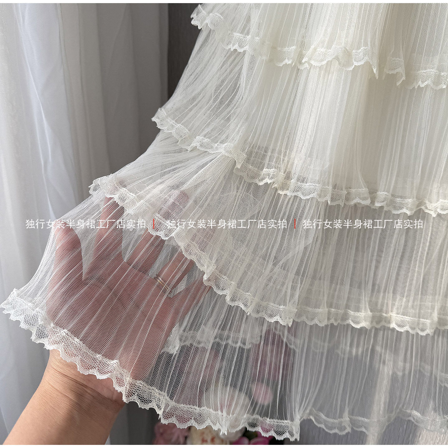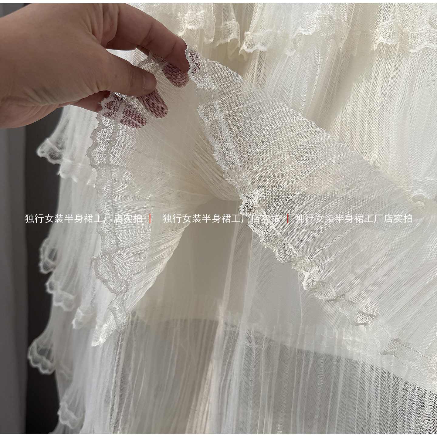 米白色网纱拼接蛋糕长裙女浪漫高级感A字高腰显瘦荷叶边蕾丝裙子